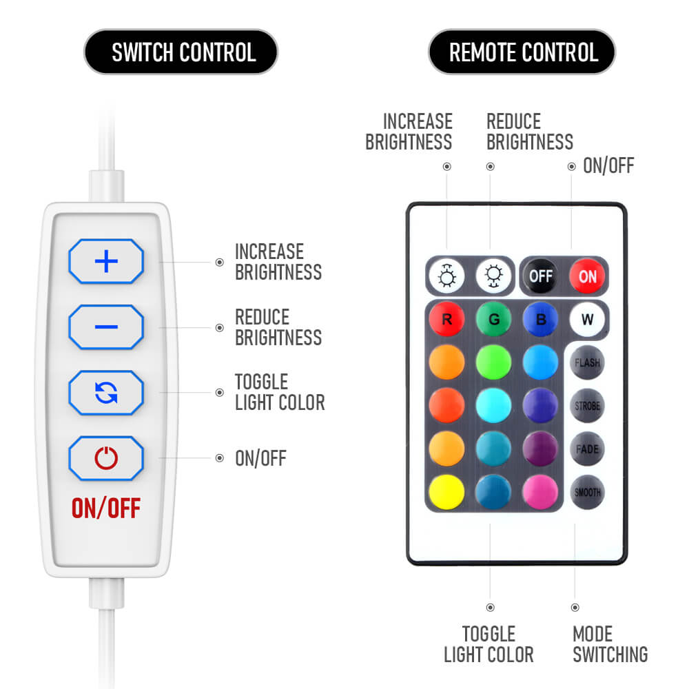- Remote control functionality with 16 RGB color options