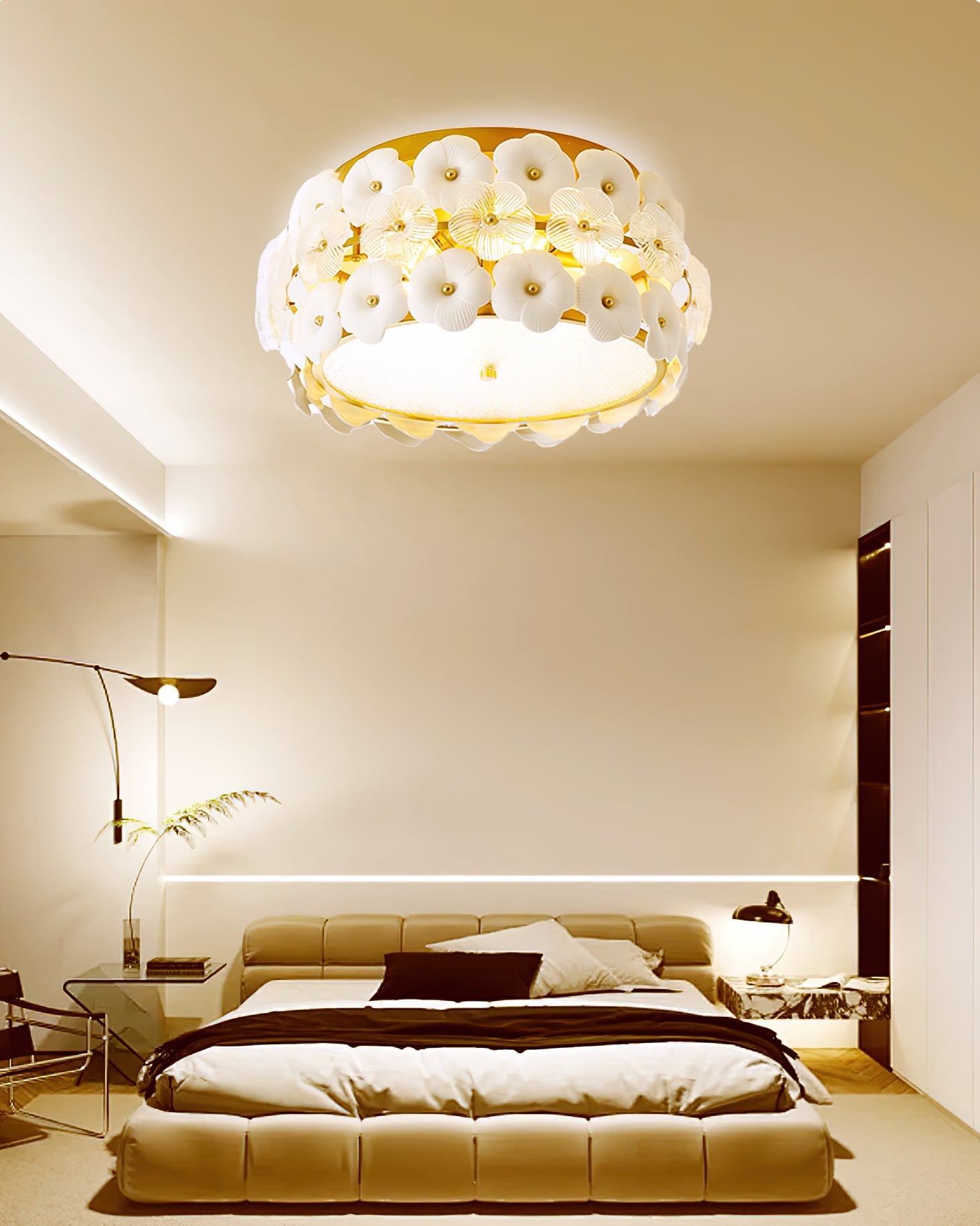 Transform your living space into an oasis of elegance with the Regina Flowers Ceiling Light Fixture. This exquisite design deftly merges Nordic simplicity with a touch of floral beauty, making it a captivating focal point for any room. Crafted from delicately cut glass, the flower-shaped lampshade emanates a soft, warm glow, casting a serene ambiance that enriches your home with a cozy, inviting atmosphere. Each petal reflects light with grace, creating a tranquil interplay of brightness that dances across your walls.