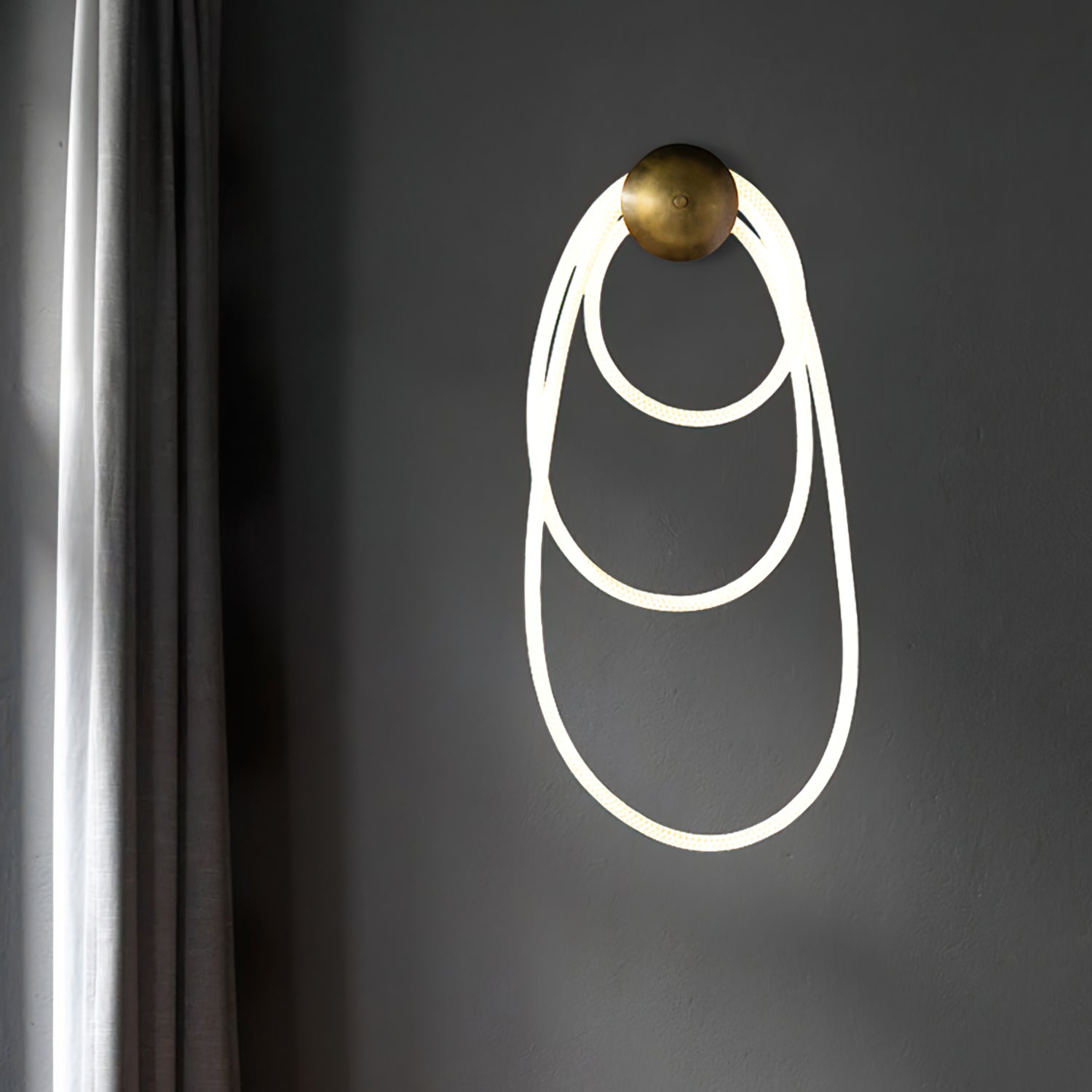 Elevate your interior design with the Dekorfine Rigel Wall Lamp, a masterpiece of modern versatility and elegance. This innovative wall lamp features a unique braided silicone rope design, allowing for flexible arrangements to suit your personal style. The sophisticated gold mount adds a touch of luxury, making the Rigel Wall Lamp a standout piece in any room.