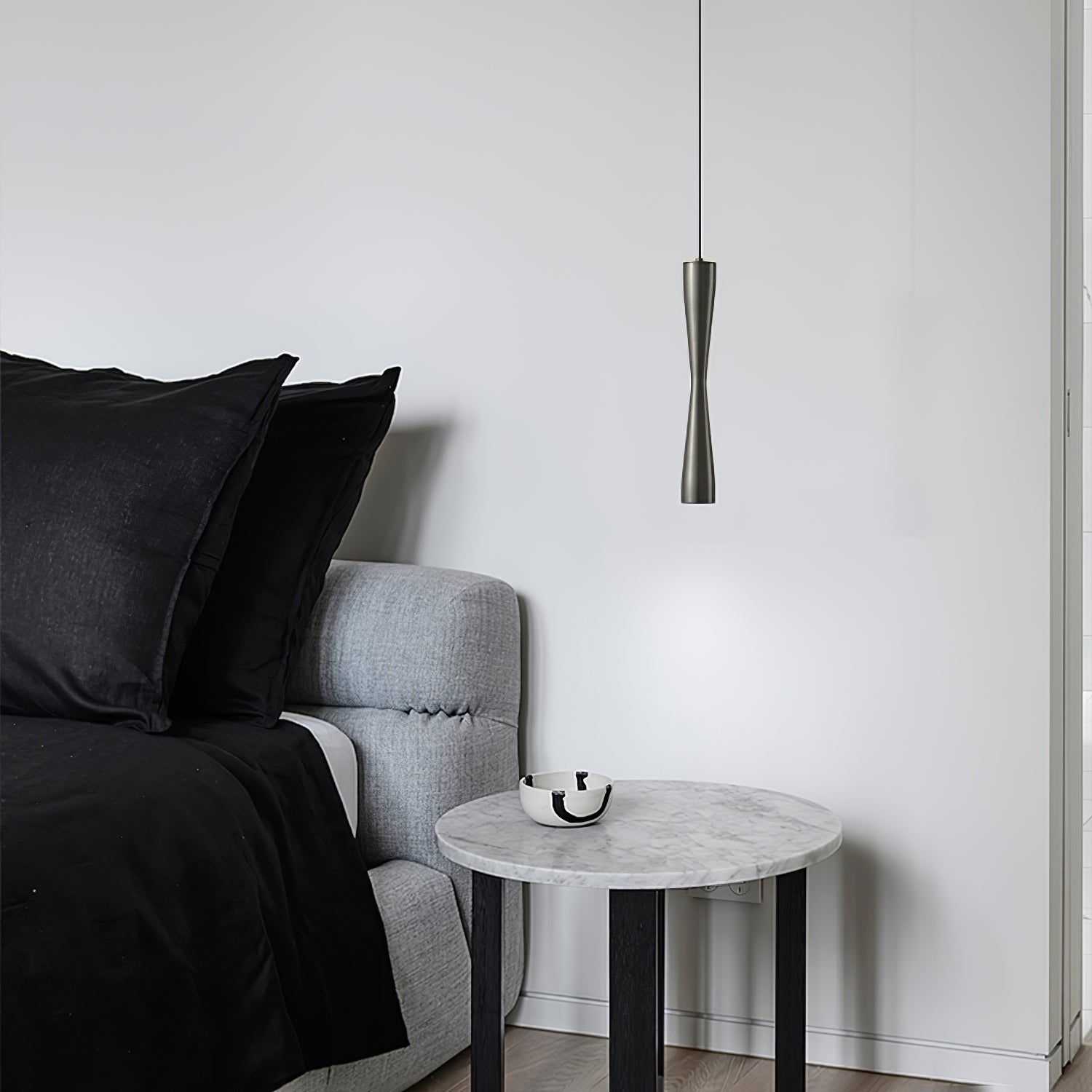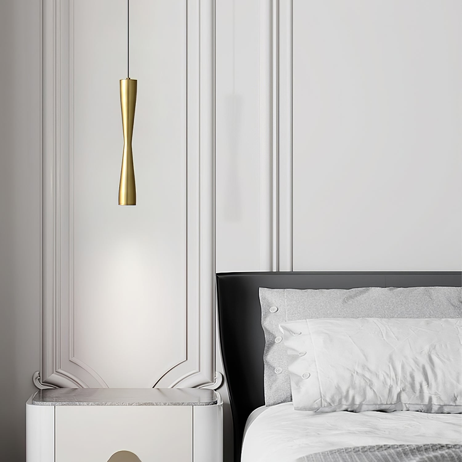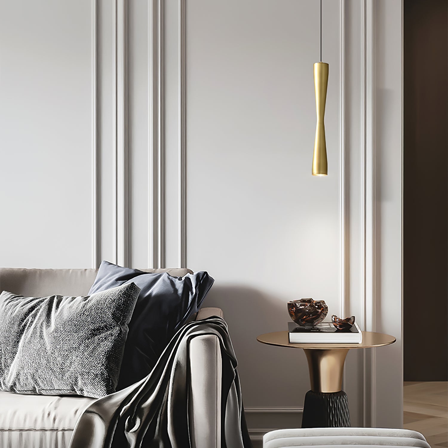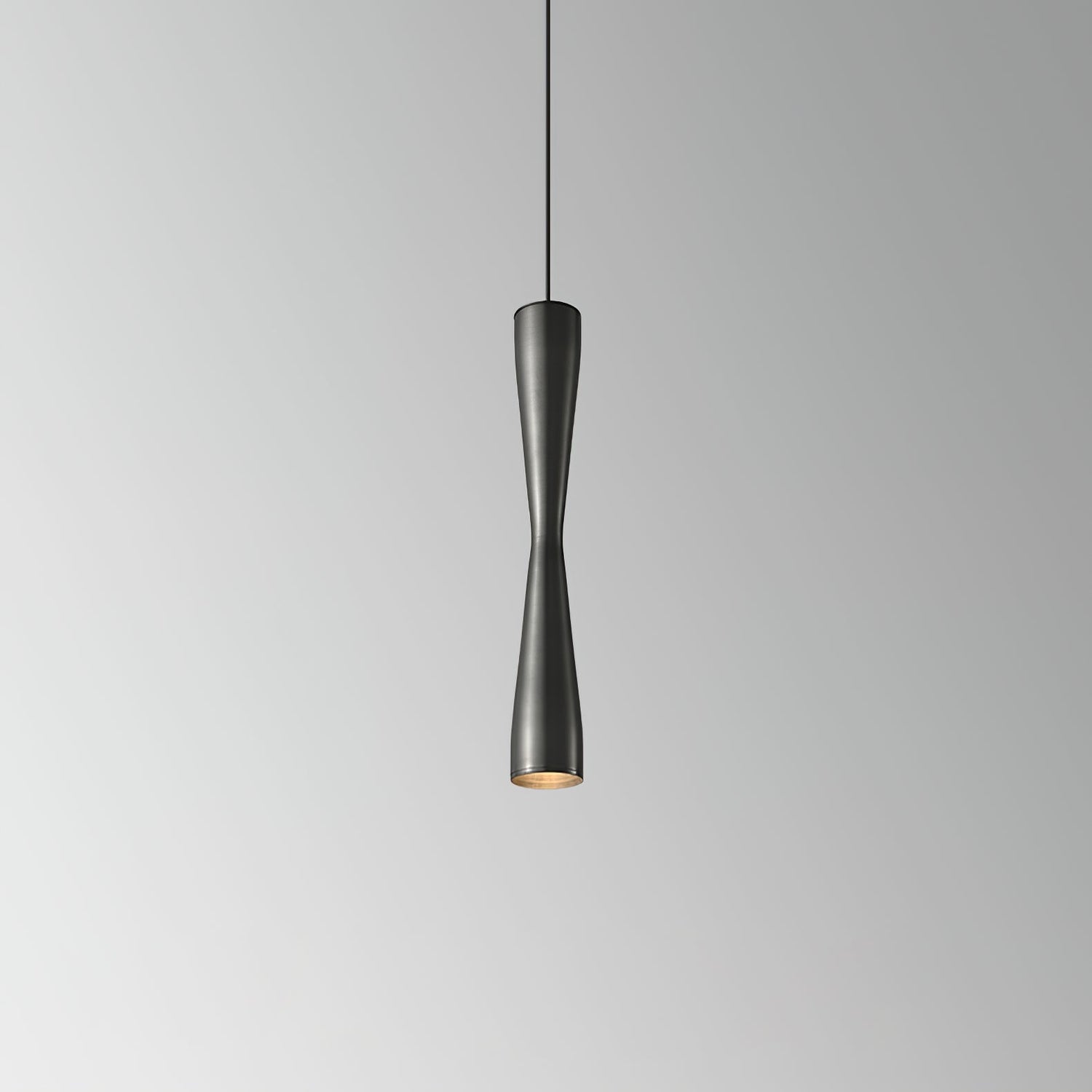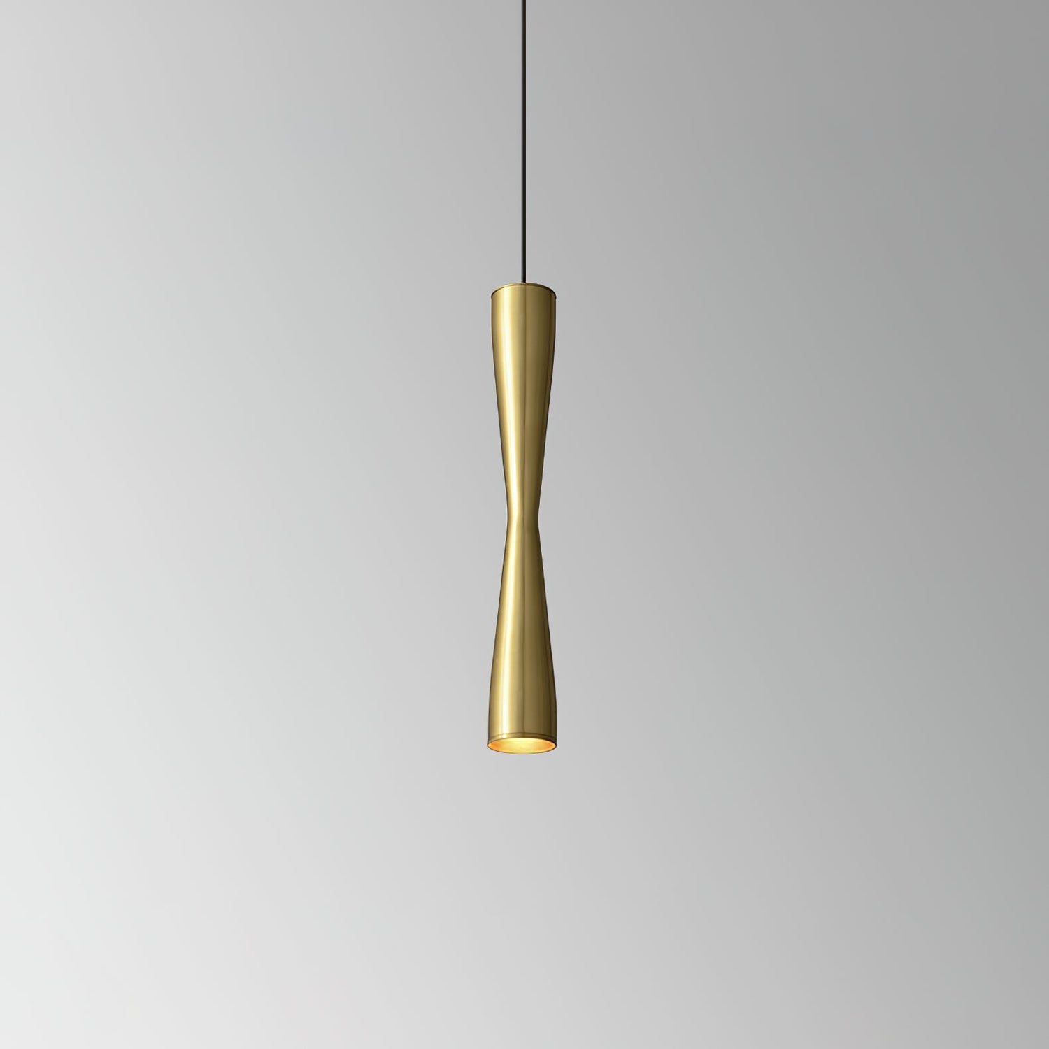 The Robson Pendant has a clean minimalist design. Featuring a formed aluminum hourglass-shaped shade in a Black, brass finish.The Robson Pendant Lamp is a contemporary light fixture that offers minimalist styling and timeless elegance. Crafted from aluminum, the hour-glass shaped black shade is complemented by a brass finish, creating a look that is sure to stand the test of time. Perfect for any modern home.