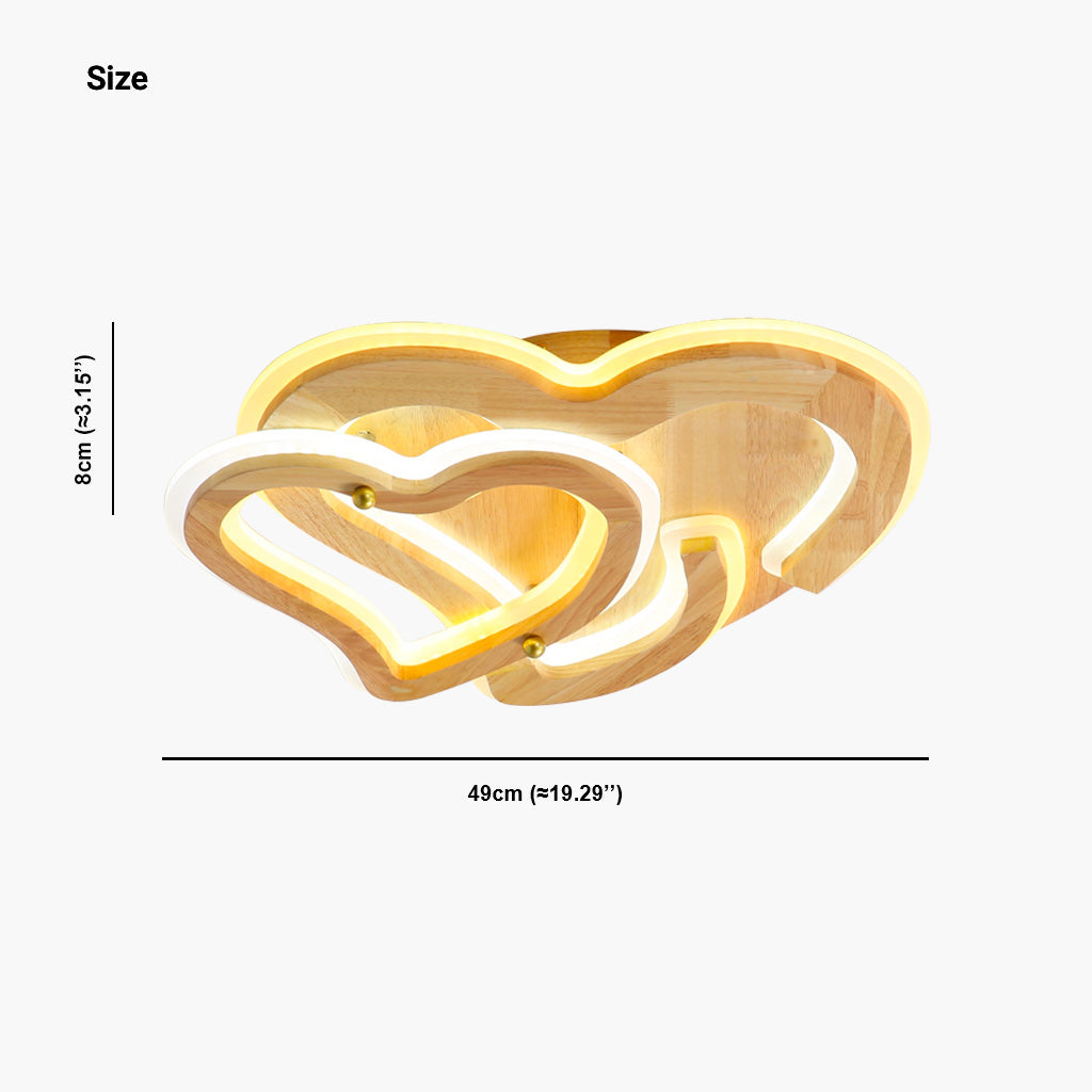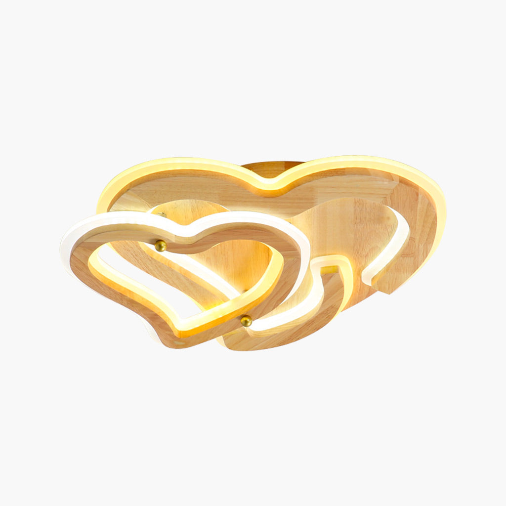 Illuminate your space with the enchanting allure of our Ceiling Light Romantic Heart Flush Mount. This exquisite piece epitomizes Nordic design, melding organic elegance with effortless functionality. Crafted from premium natural rubber wood, each light features a smooth, warm finish that invites a sense of serenity into any room. The two heart-shaped designs intertwined create a captivating focal point, embodying both love and light in a harmonious way.