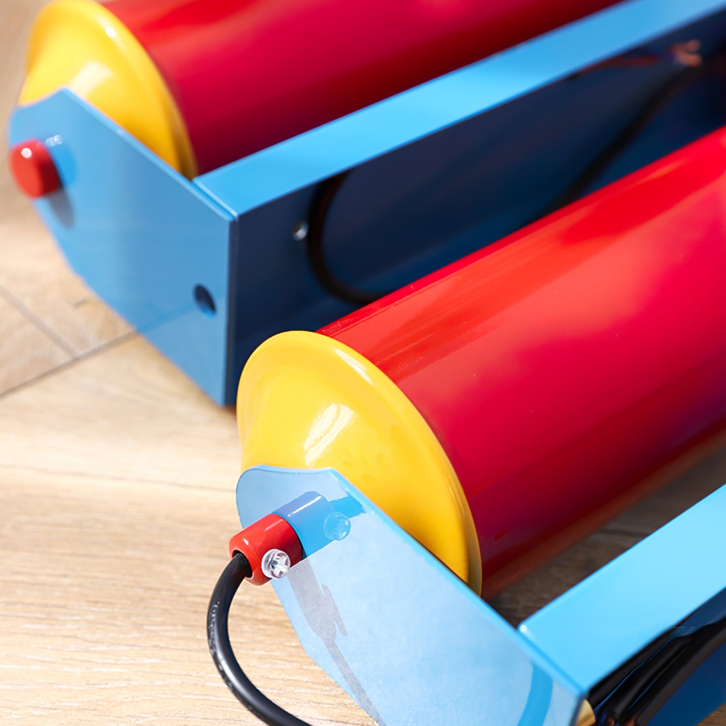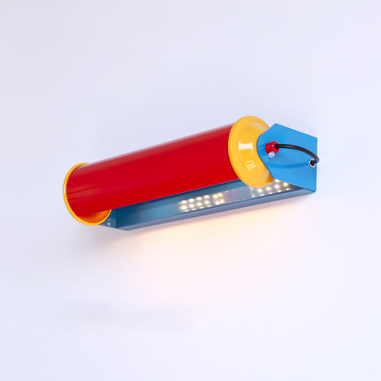 The Rondo Wall Lamp Memphis Style from dekorfine is a vibrant and playful lighting fixture that brings a burst of color and character to any space. Featuring a bold combination of red, yellow, and blue hues, this lamp is inspired by the iconic Memphis design movement, known for its whimsical and eclectic style. The cylindrical shape and contrasting elements make it a standout piece, perfect for adding a touch of retro charm to your living room, bedroom, or hallway. With the Rondo Wall Lamp Memphis Style from dekorfine, you can effortlessly infuse your home with a sense of fun and creativity.