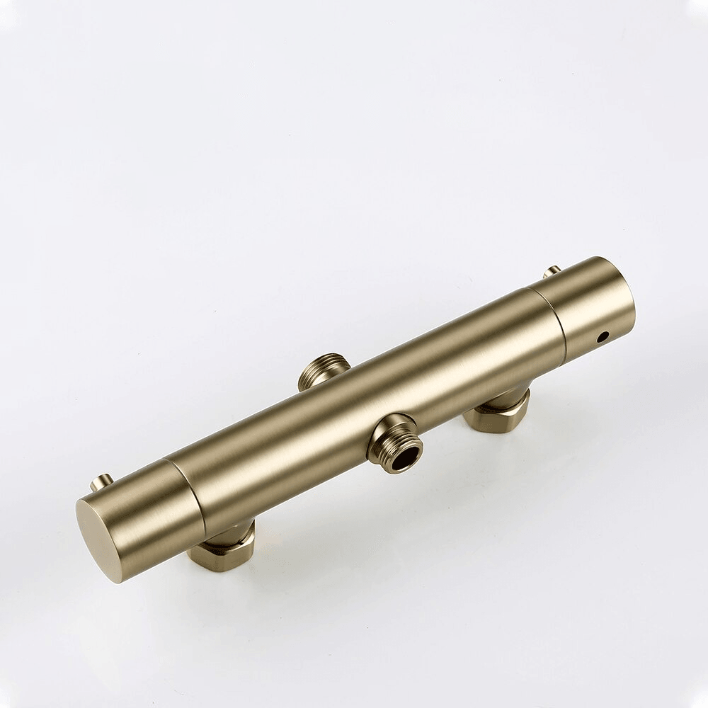 - Materials: Premium brass with brushed gold finish, stainless steel hose