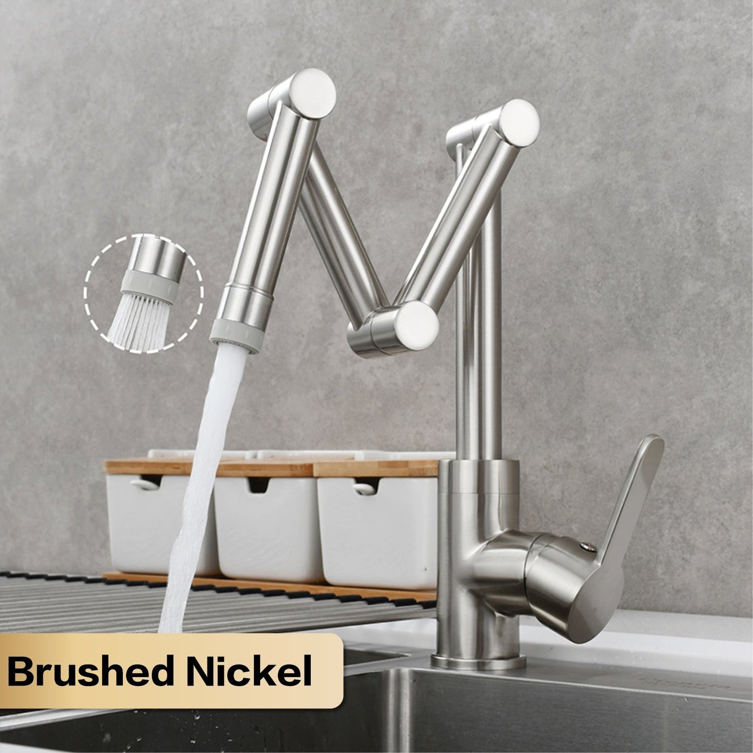 Experience the ease of a well-designed culinary environment with the Sailea Pot Filler, designed for the discerning home chef. The extendable arm and 360-degree swivel functionality provide unmatched convenience, allowing you to fill pots directly on your countertop with graceful fluidity. No more heavy lifting or awkward balancing; simply position and pour. The dual-handle design offers intuitive control over water flow and temperature, ensuring that each dish receives just the right amount of water, transforming the cooking process into a seamless pleasure.