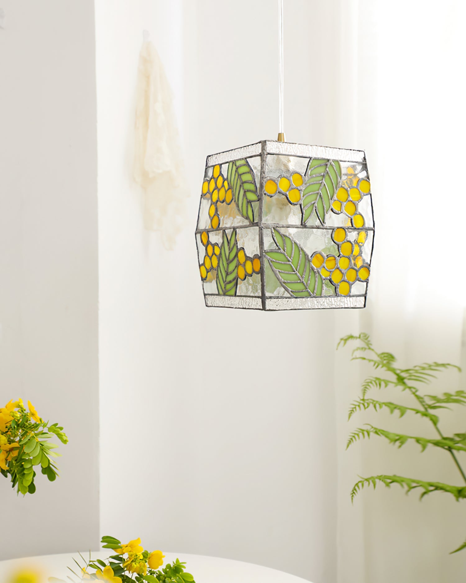The Seed Pendant Lamp from dekorfine is a charming addition to any space, featuring a stained glass design adorned with vibrant yellow seeds and green leaves. The intricate detailing and colorful glass create a warm, inviting glow, making it a perfect statement piece for any room. Enhance your home decor with the artistic and elegant Seed Pendant Lamp from dekorfine.