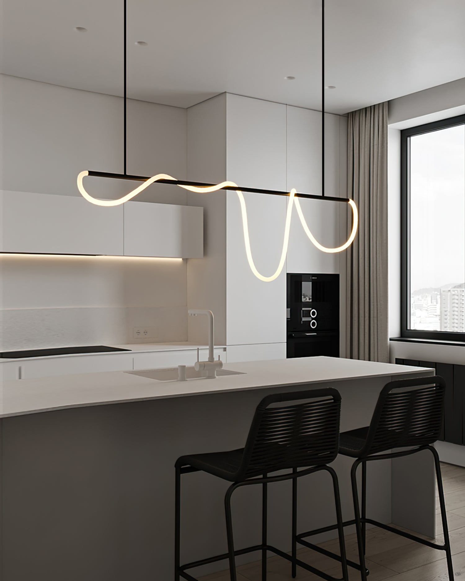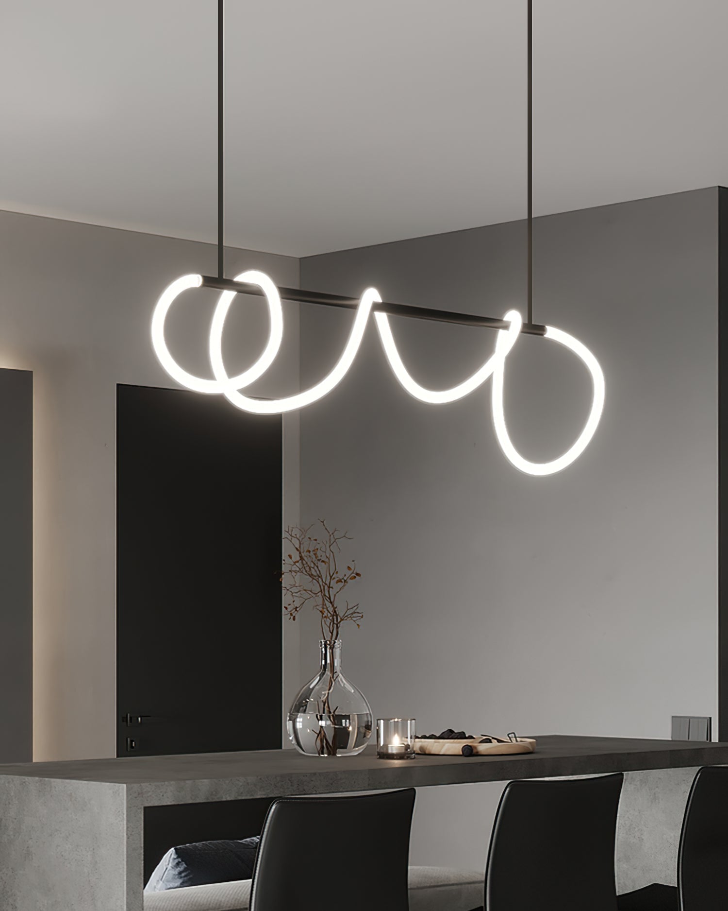 The Serpentine Glow Black Chandelier from dekorfine is a striking piece that combines modern design with artistic elegance. Featuring a sleek black frame, this chandelier showcases fluid, serpentine lines that create a dynamic visual effect. The unique looping design is not only eye-catching but also provides ample illumination, making it perfect for contemporary living spaces or dining areas. Add a touch of sophistication and style to your home with the Serpentine Glow Black Chandelier.