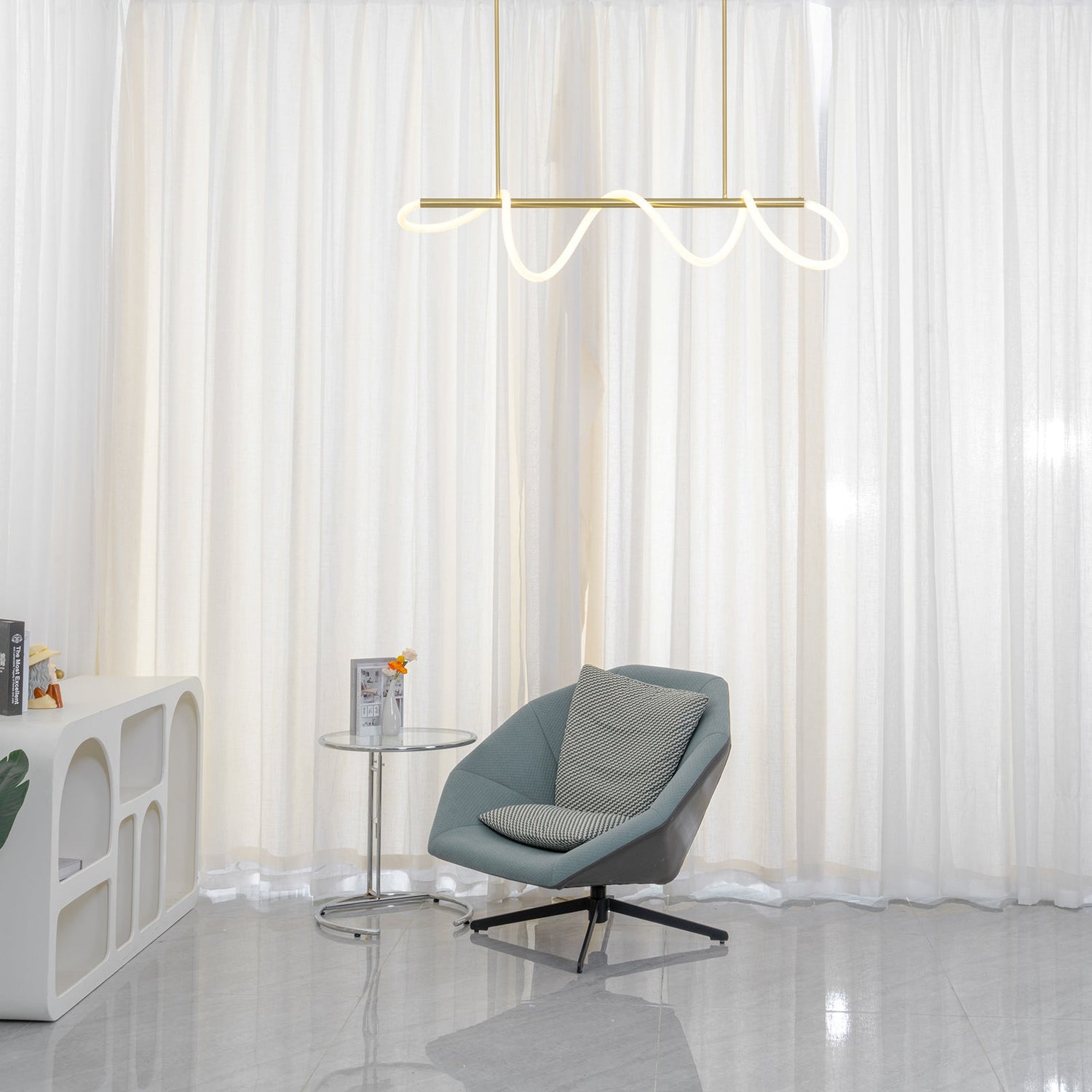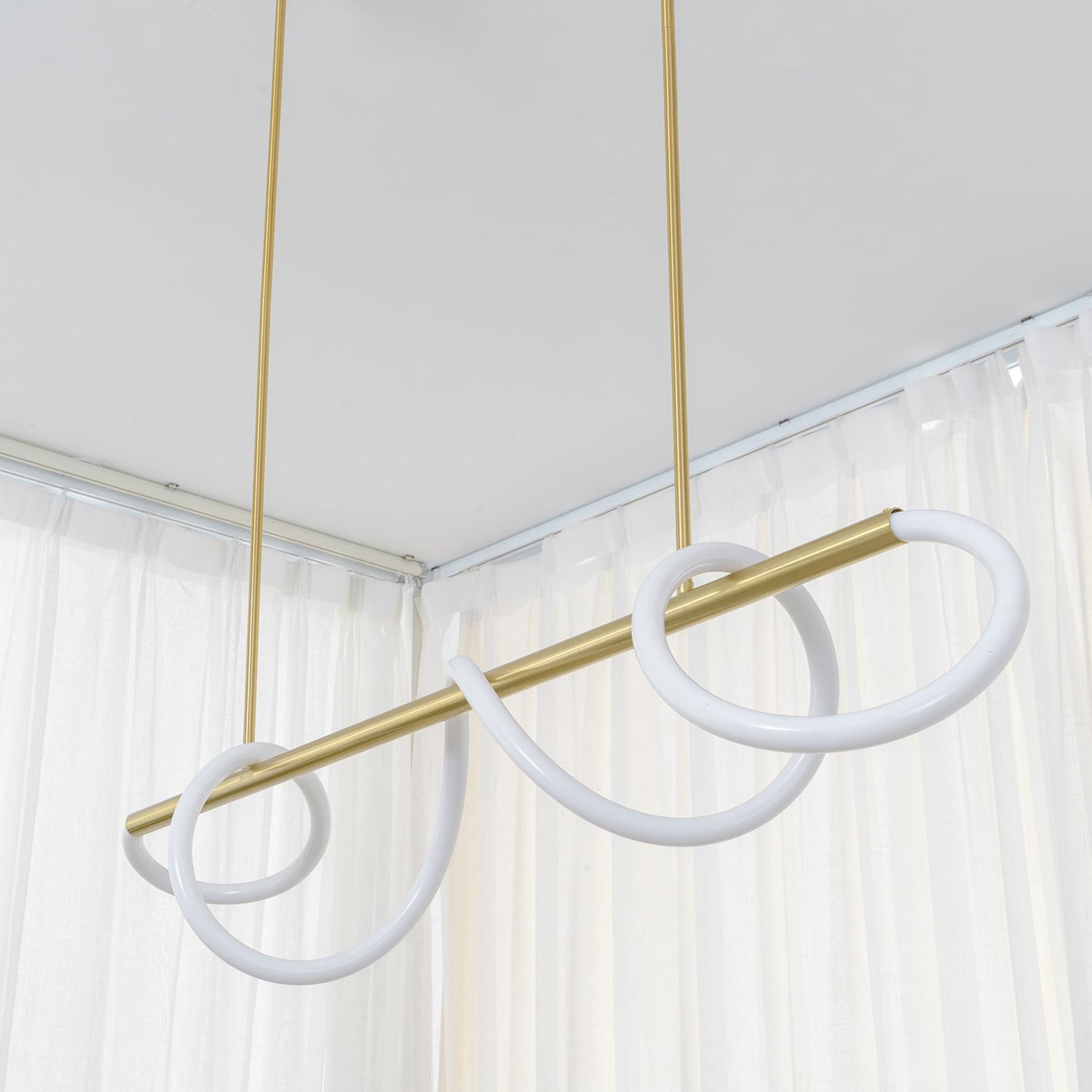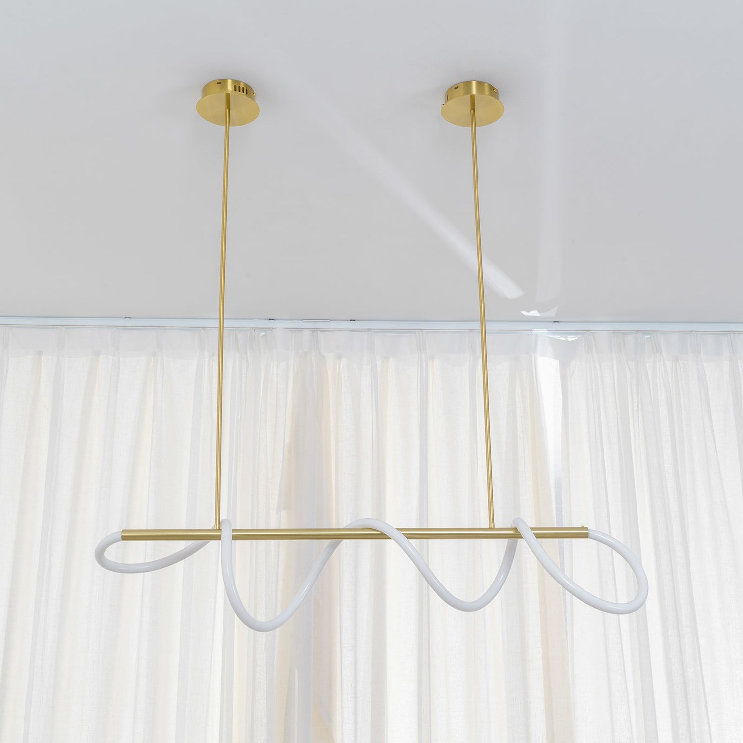 The Serpentine Glow Gold Chandelier from dekorfine is a striking piece that combines modern design with artistic elegance. Featuring a sleek gold frame, this chandelier showcases fluid, serpentine lines that create a dynamic visual effect. The unique looping design is not only eye-catching but also provides ample illumination, making it perfect for contemporary living spaces or dining areas. Add a touch of sophistication and style to your home with the Serpentine Glow Gold Chandelier.