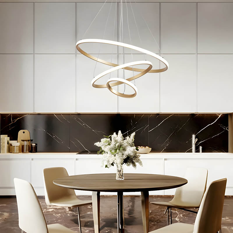 Depending on the number of rings you choose, this pendant light offers various wattage options, ranging from 10W for 1 ring, 30W - 50W for 2 rings, to 60W - 90W for 3 rings. This adaptability ensures that you get the right level of brightness for your space.
