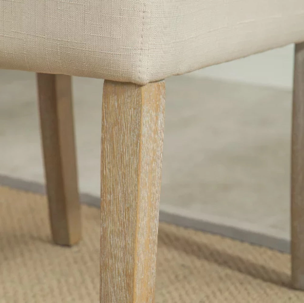 - Has a slightly curved design with durable wooden legs in an oak finish