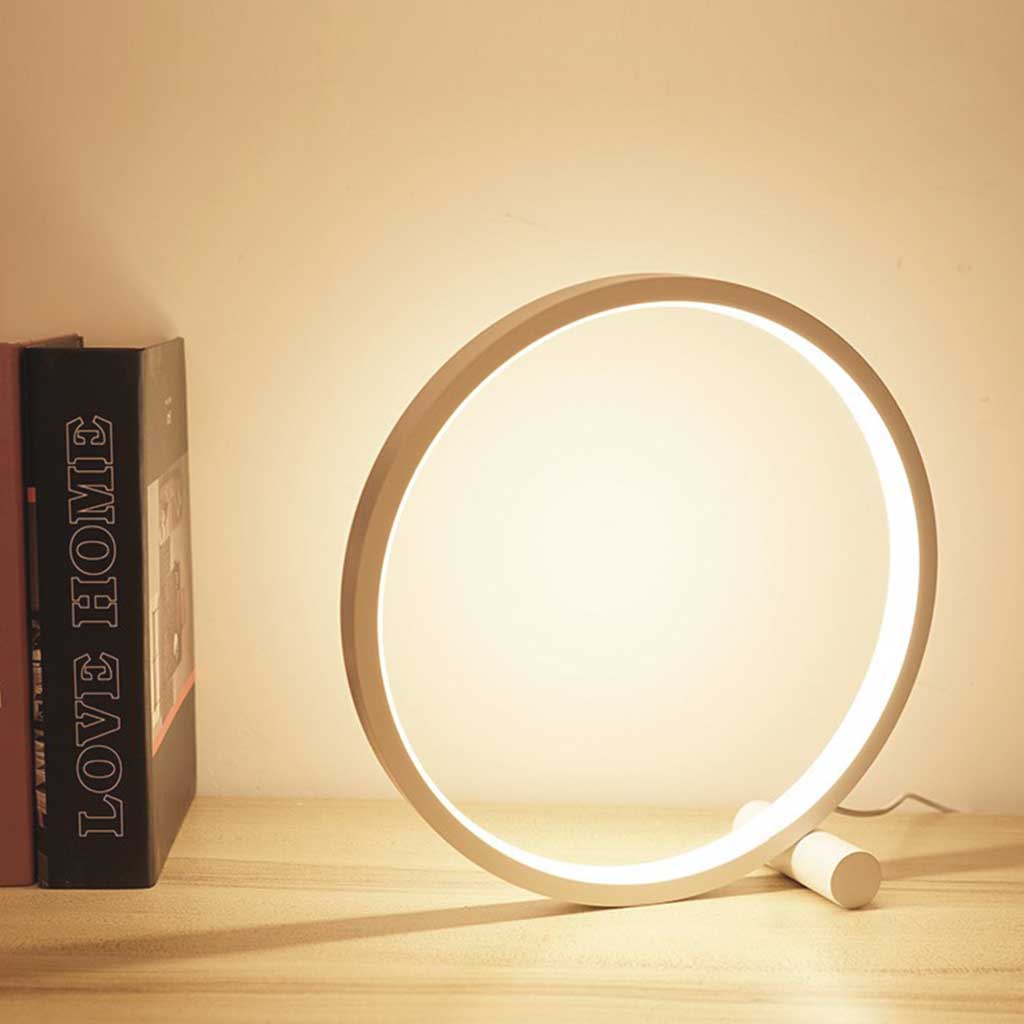 Table Lamp Touch Minimalist Chic Circular Halo, White / Black