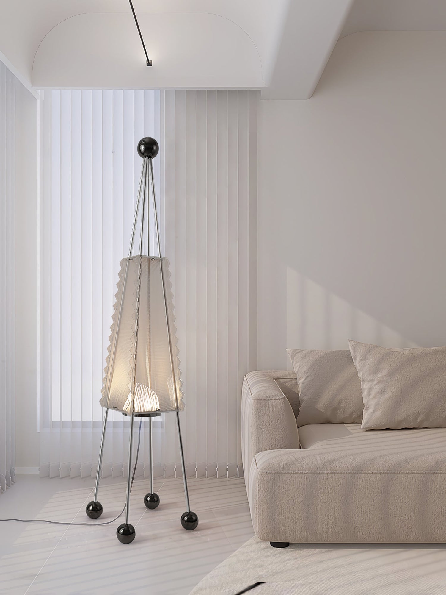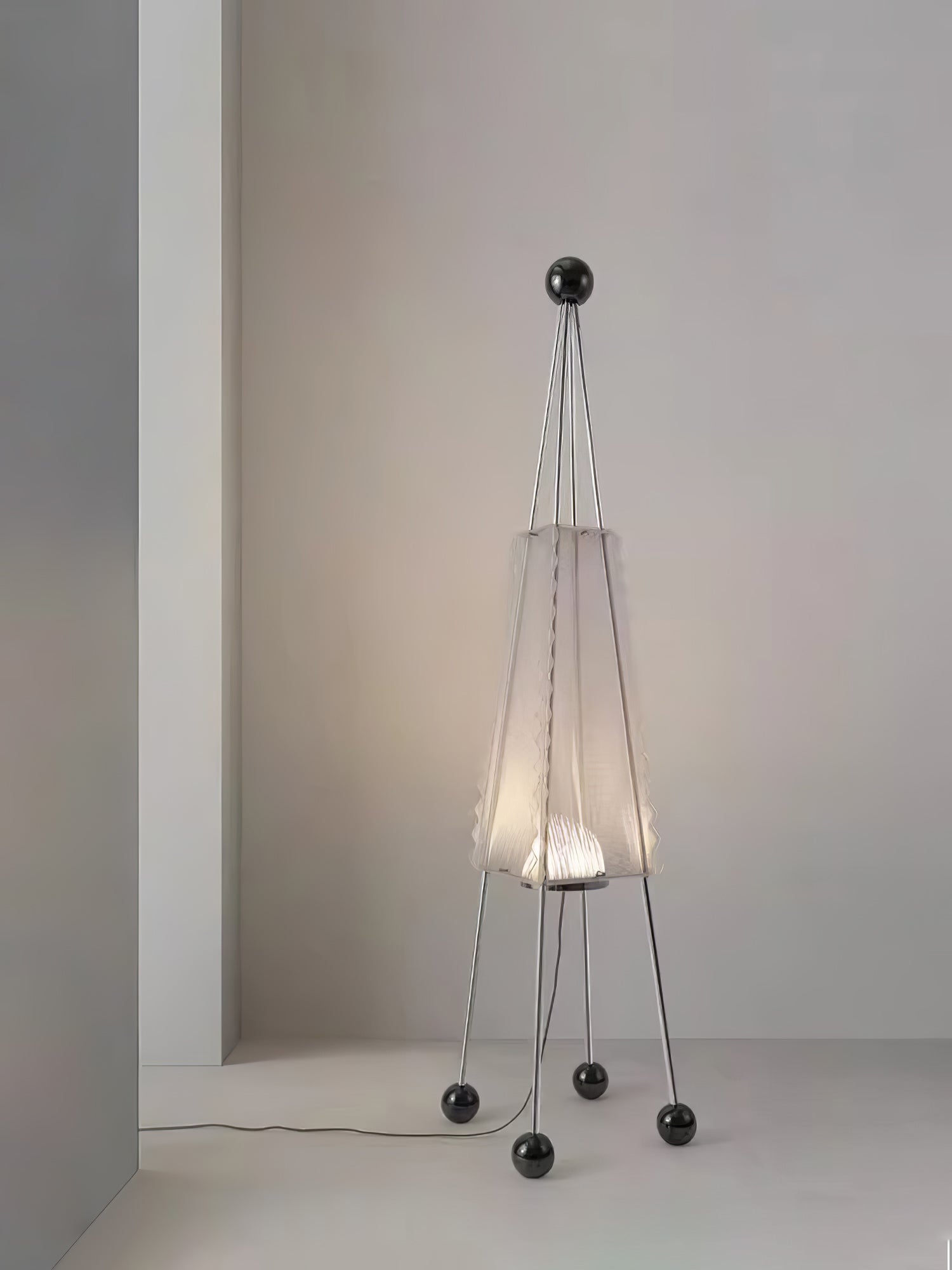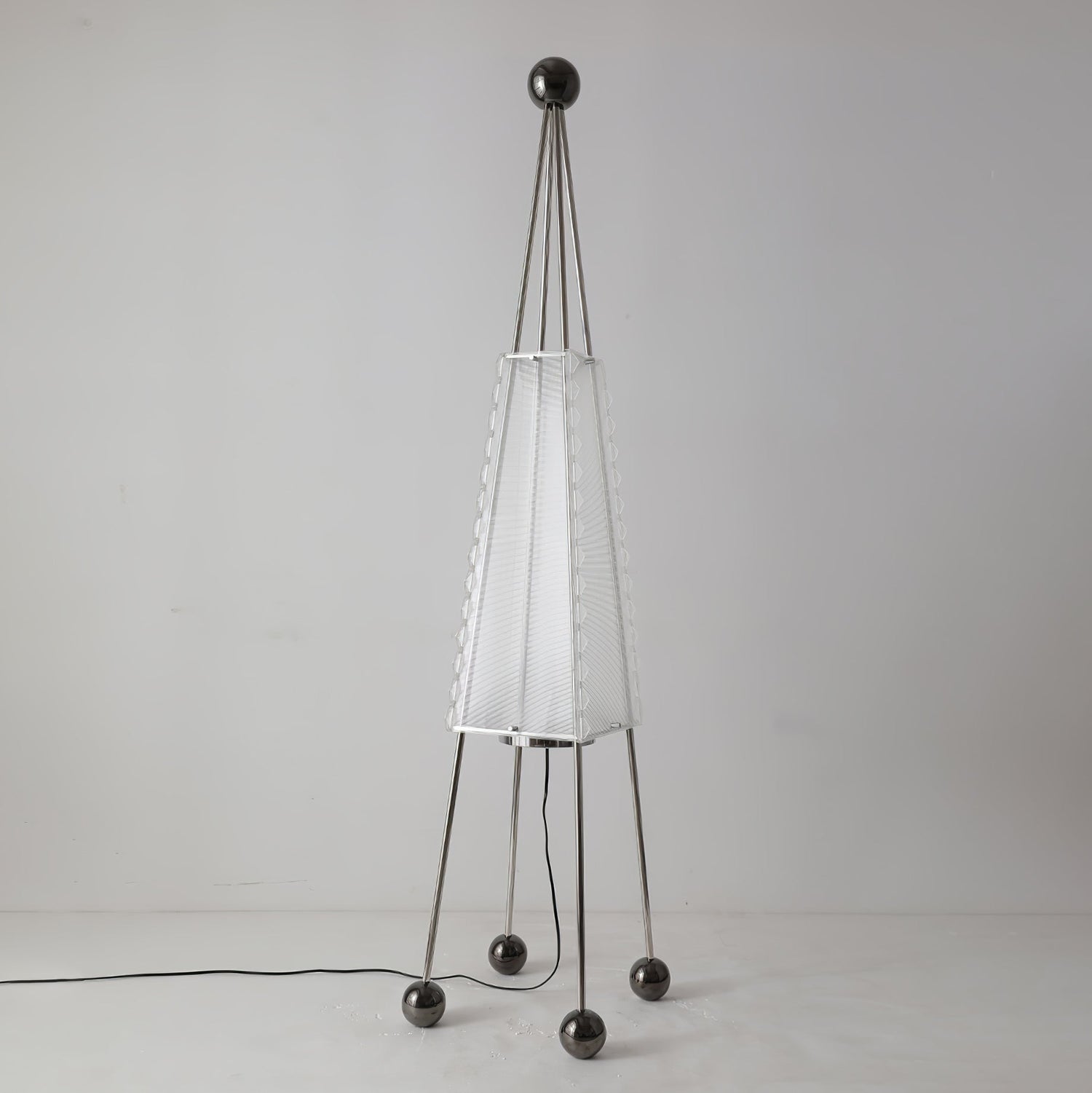 The Tent Floor Lamp brings the camping experience right to your home. With a design reminiscent of a pitched tent, this lamp features a durable stainless steel base and a vibrant acrylic shade. Add a touch of adventure to any room with this unique and stylish lamp.