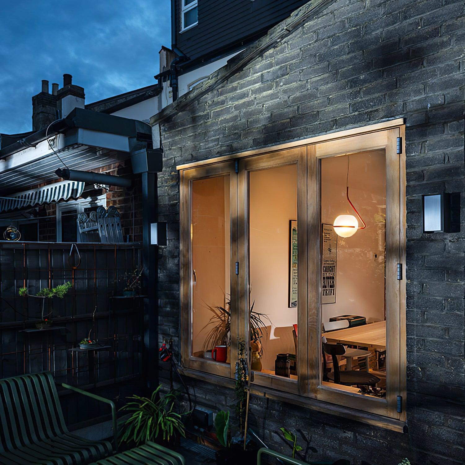 This lamp features a curvaceous metal suspension that holds a delicate glass diffuser. The bold, red structure provides a striking contrast against the serene glow of the glass, making it a focal point in any contemporary or minimalist decor. Its gentle curves are reminiscent of modern art sculptures, bringing a touch of sophistication to your space.