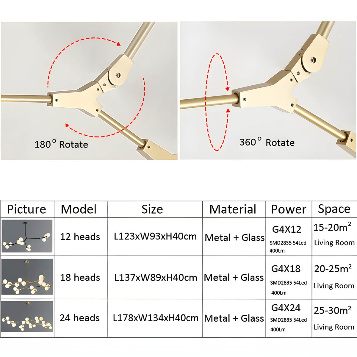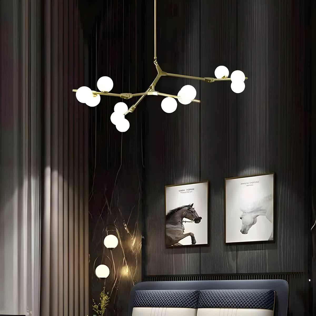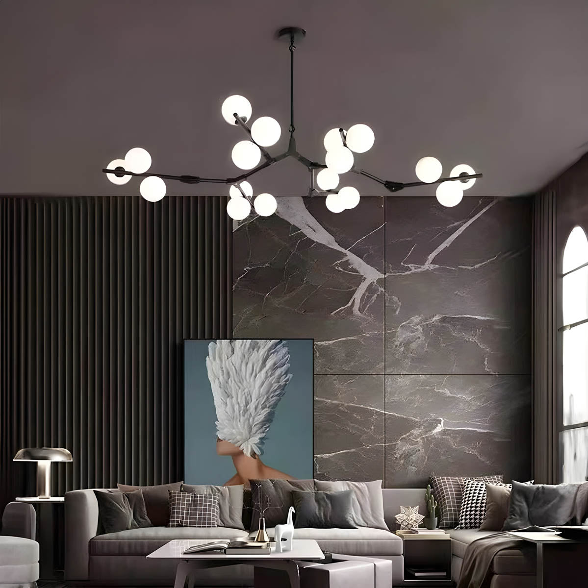 Enhance any space with TRELLII, a unique chandelier that offers endless design possibilities. Its moving joints can be arranged at 180 and 360 degrees, allowing you to customise its visual appeal. With a modern grape-like appearance, it adds a touch of elegance and originality to any room.