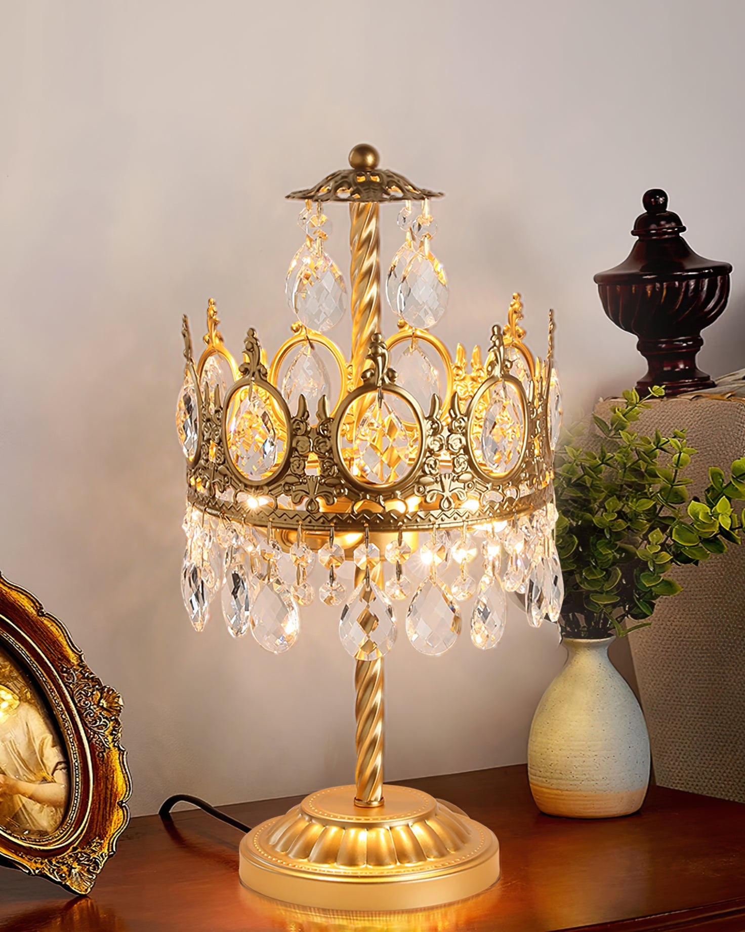 All of the crystals are in nice shape and original, some of them in a few cases have been replaced with the same crystals from our stockpile of antique parts. The design emphasizes the natural return of the soul. It is not a luxury, but it can be called a work of art, a delicate and beautiful French crystal table lamp