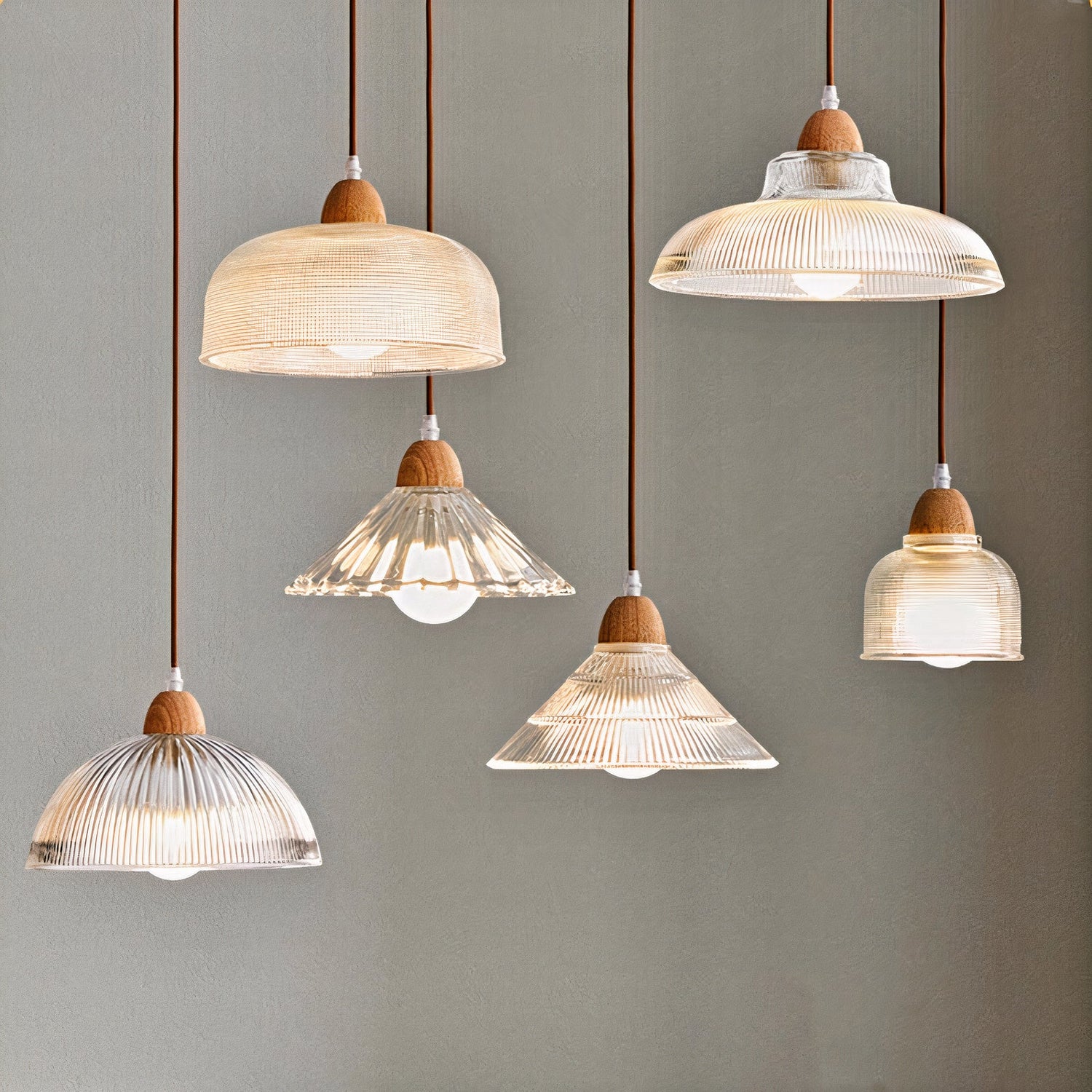 The interplay of glass and natural wood elements creates a captivating visual that harmonizes with both minimalist and eclectic styles. Each of the three small chandeliers produces a gentle ambient glow, setting the perfect backdrop for any gathering, while enhancing the overall atmosphere of your home. Picture the enchanting play of light through the textured glass, casting enchanting reflections that dance across your walls, reminding you of serene Nordic landscapes and the beauty of nature.
