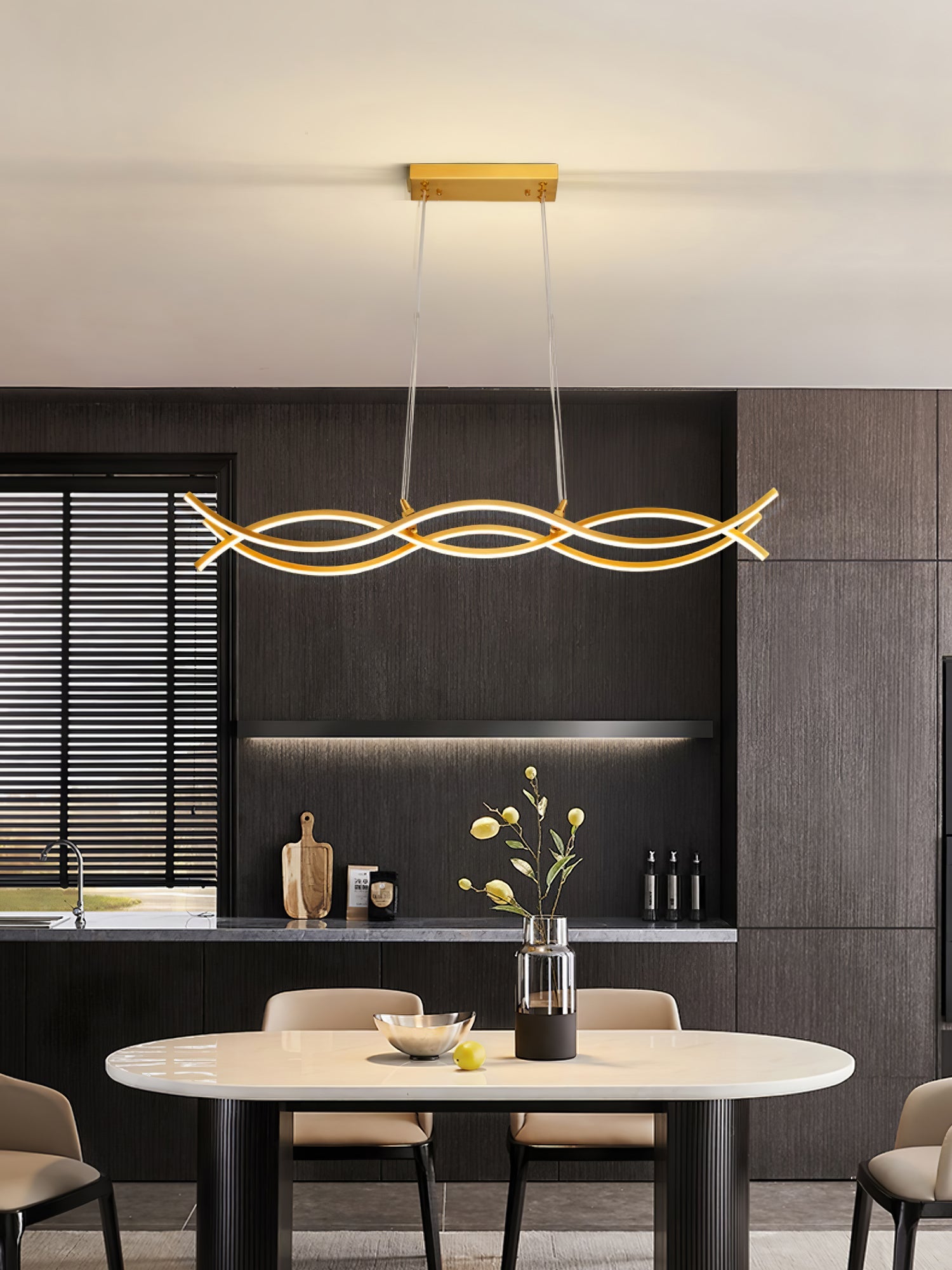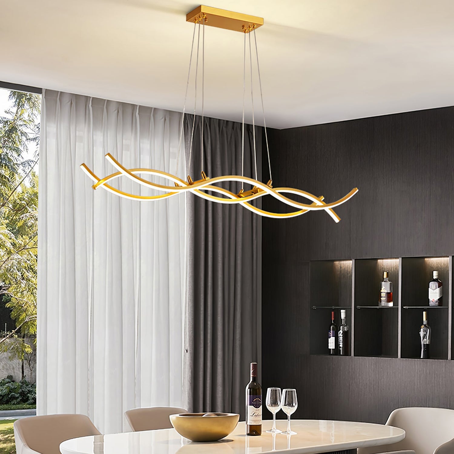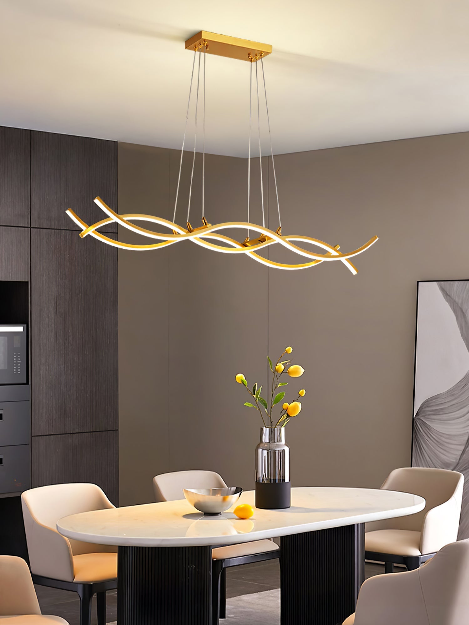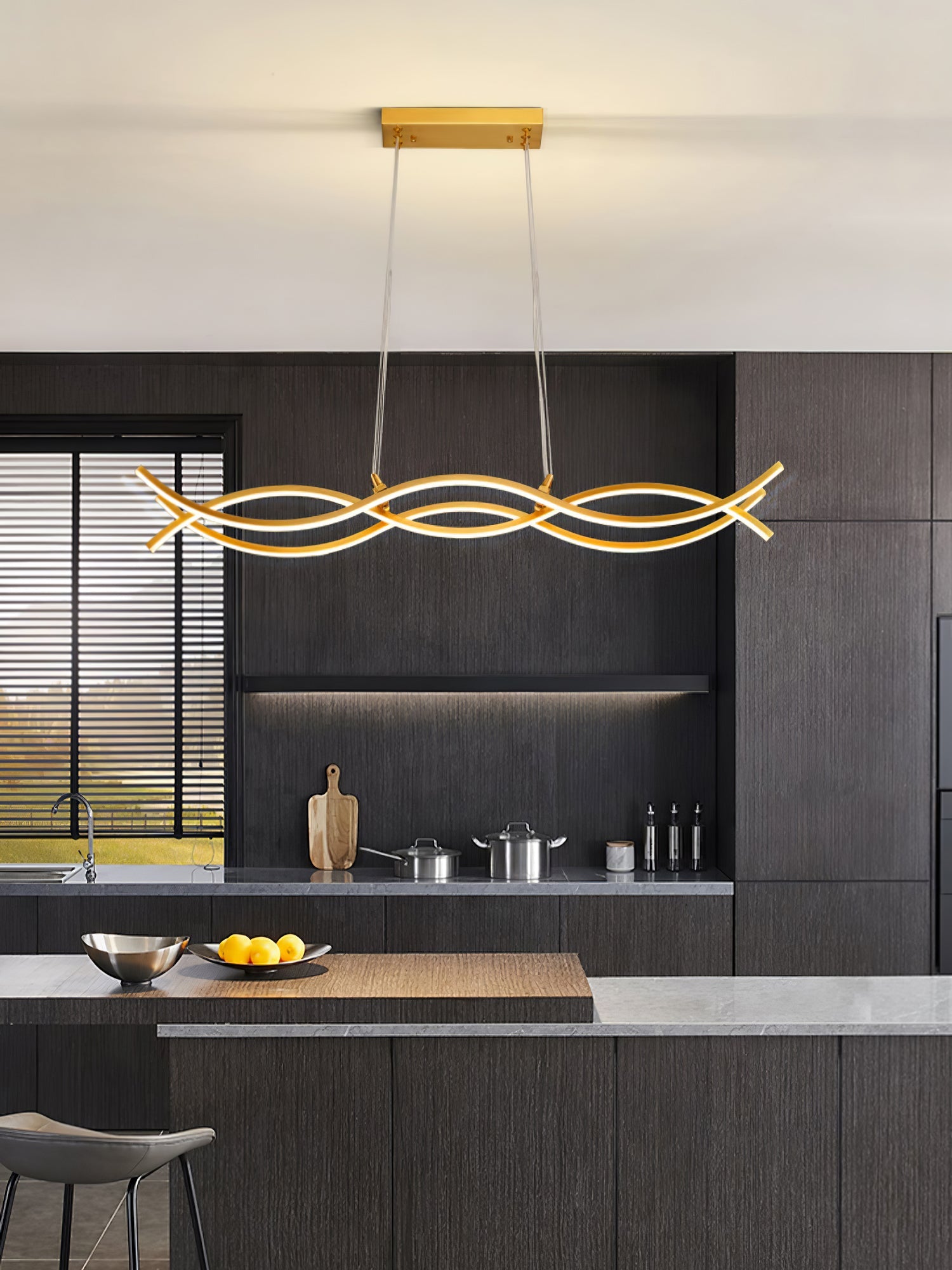 Modern elegance is flaunted by the Wave Island Pendant Light. This hanging lamp is made of platedBrassthat displays a refined fusion of wavy lines, with a soft wedge-type radiance. It is the perfect light fitting for the modern adventurous because of its artistic illumination, representing the glowing sun on top of mountain ranges.