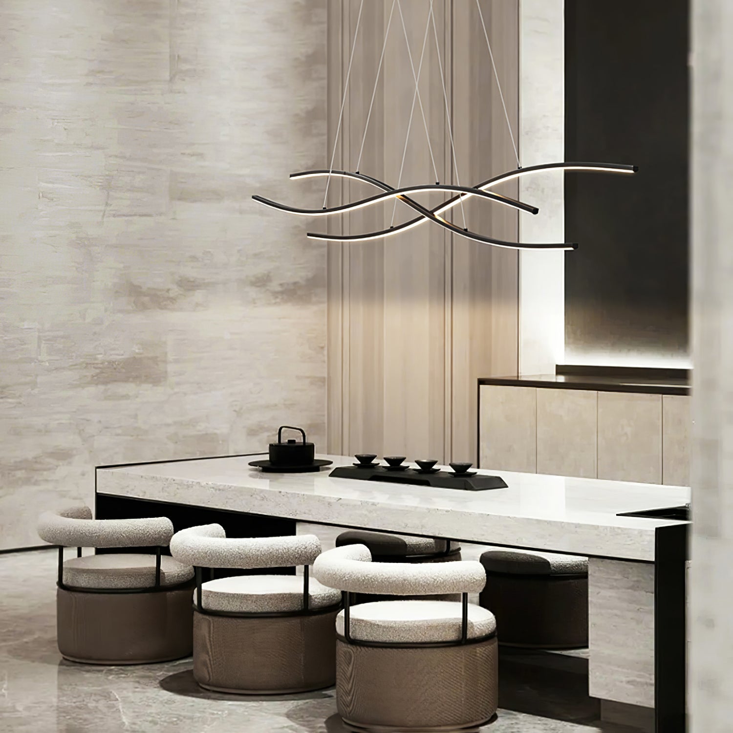 Bring contemporary style to your space with the Wave Pendant Lamp. Its graceful wave pattern is complemented by adjustable LED light with three settings, making this lamp the perfect way to add warmth and ambiance to any room. Its adjustable light setting and timeless design make it easy to customize your space and create the perfect atmosphere. The Wave Pendant Lamp is a stunning addition to any home.