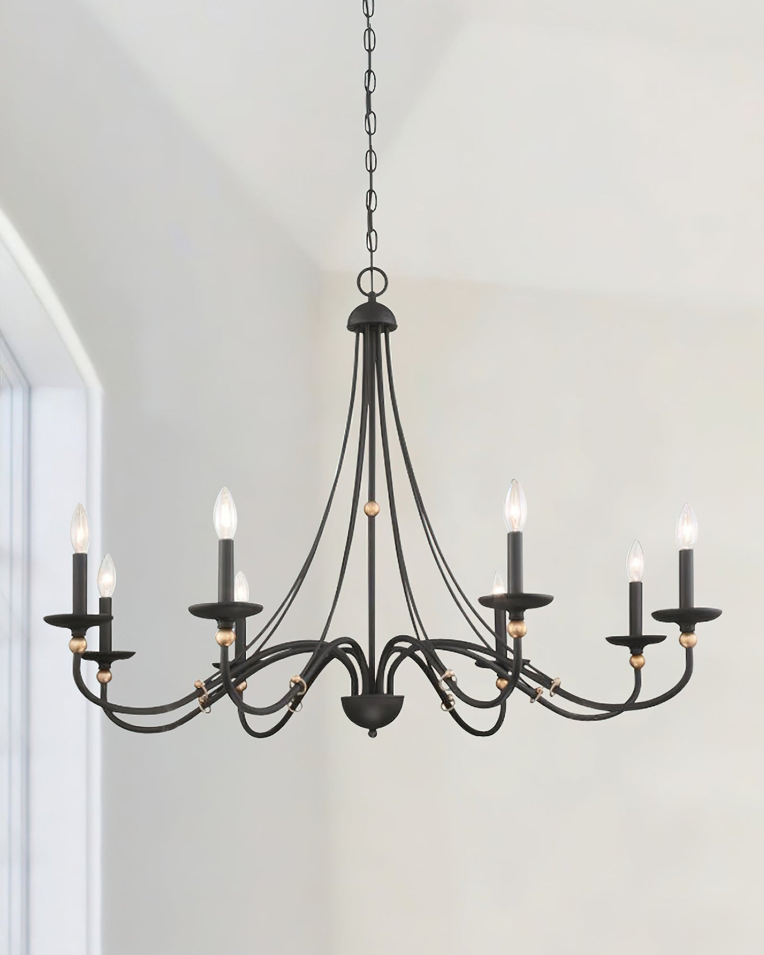 Elevate your space with the Westchester Elegant Chandelier, a stunning fusion of Nordic simplicity and modern artistry. Each of its six or eight thoughtfully crafted arms extends gracefully, reminiscent of delicate branches under a starlit sky. The sleek interplay of black metal and warm brass accents creates a striking balance that captivates the eye, making it a centerpiece perfect for dining rooms, living areas, or cozy nooks. With its clean lines and symmetrical design, this chandelier not only illuminates your home but also enhances its aesthetic, wrapping your environment in a warm, inviting glow.
