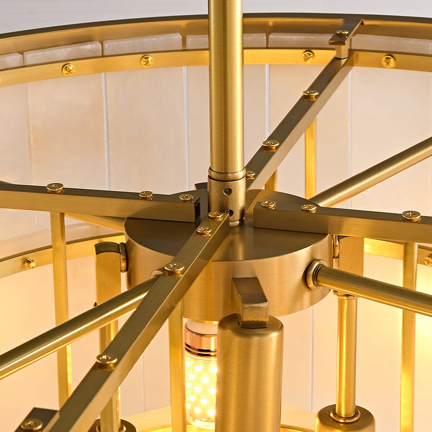 The Windham Alabaster Chandelier from dekorfine is a masterpiece of elegance and luxury. This chandelier features a stunning combination of brass and alabaster, creating a warm and inviting ambiance in any room. The brass frame provides a classic touch, while the layered alabaster panels softly diffuse the light, making it perfect for dining rooms, living spaces, or grand foyers.