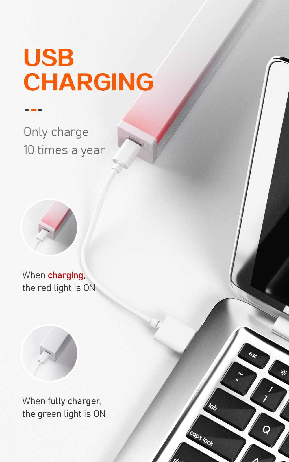 - USB rechargeable with a long-lasting battery that supports up to 6 charges per year in sensing mode