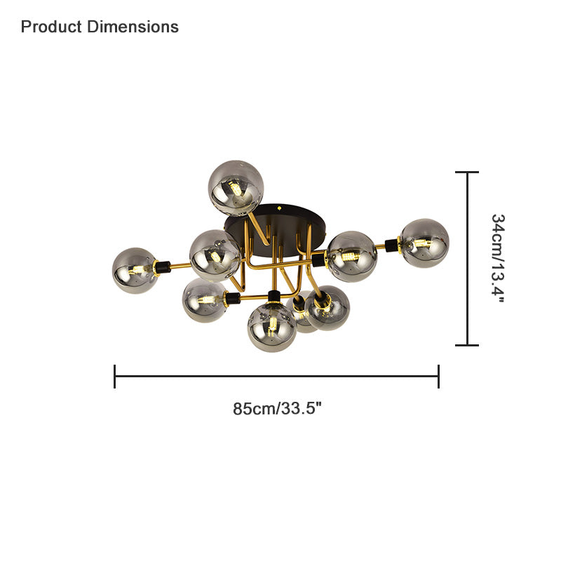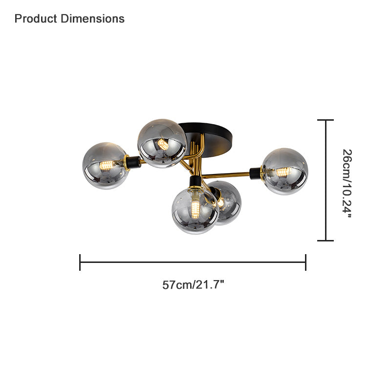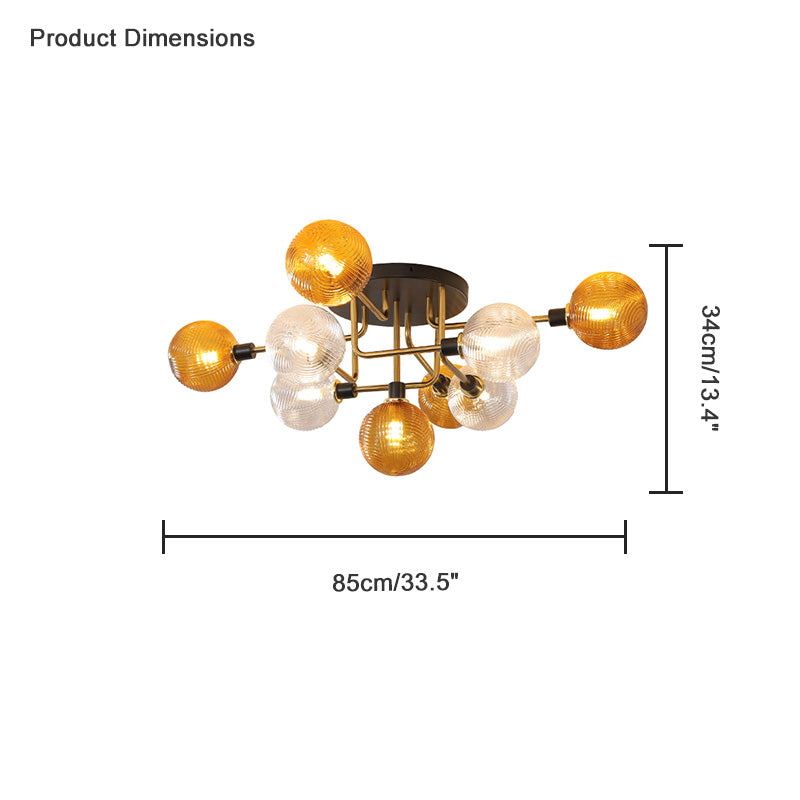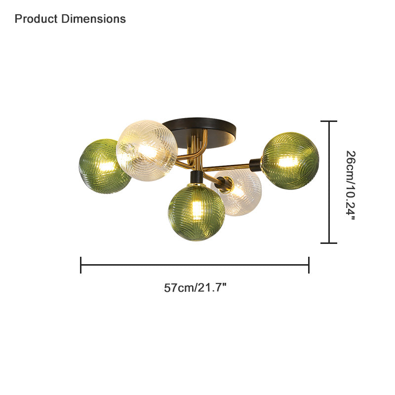 WOMO Ribbed Smoked/Green Glass Globe Ceiling Light-WM1110
