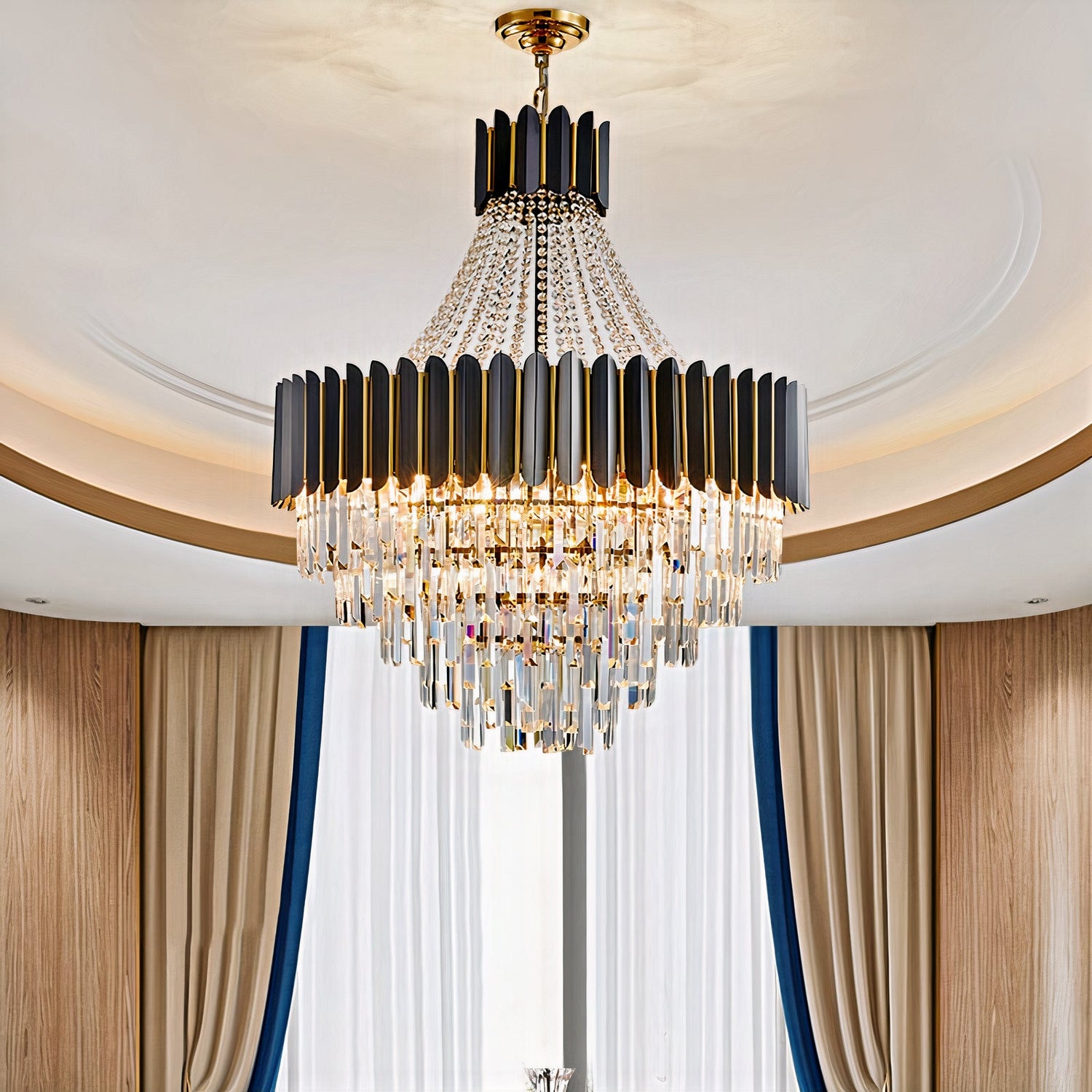 Imagine hosting gatherings beneath this magnificent chandelier, where your guests are drawn into its brilliance. The luxurious cascade of crystals creates an enchanting ambiance, transforming ordinary moments into extraordinary memories. With its architectural elegance and artistic design, this chandelier offers not just illumination but also a statement of refined taste. Every detail, from the intricate crystal arrangement to the flawless metalwork, speaks to the artistry and craftsmanship that define Nordic design.
