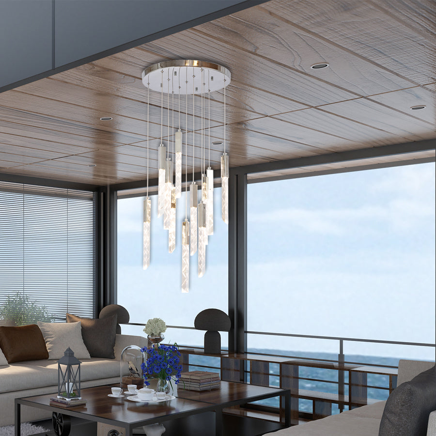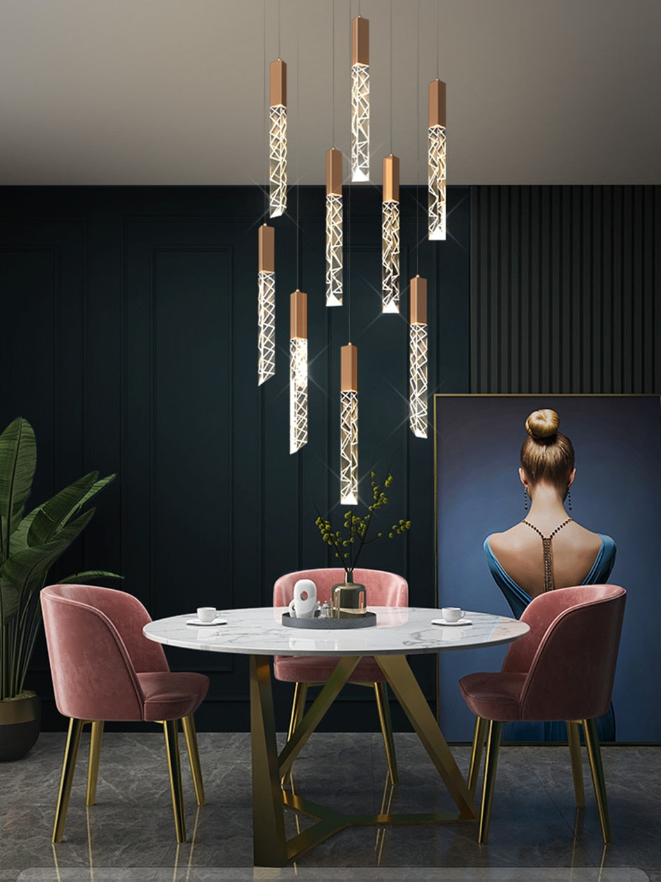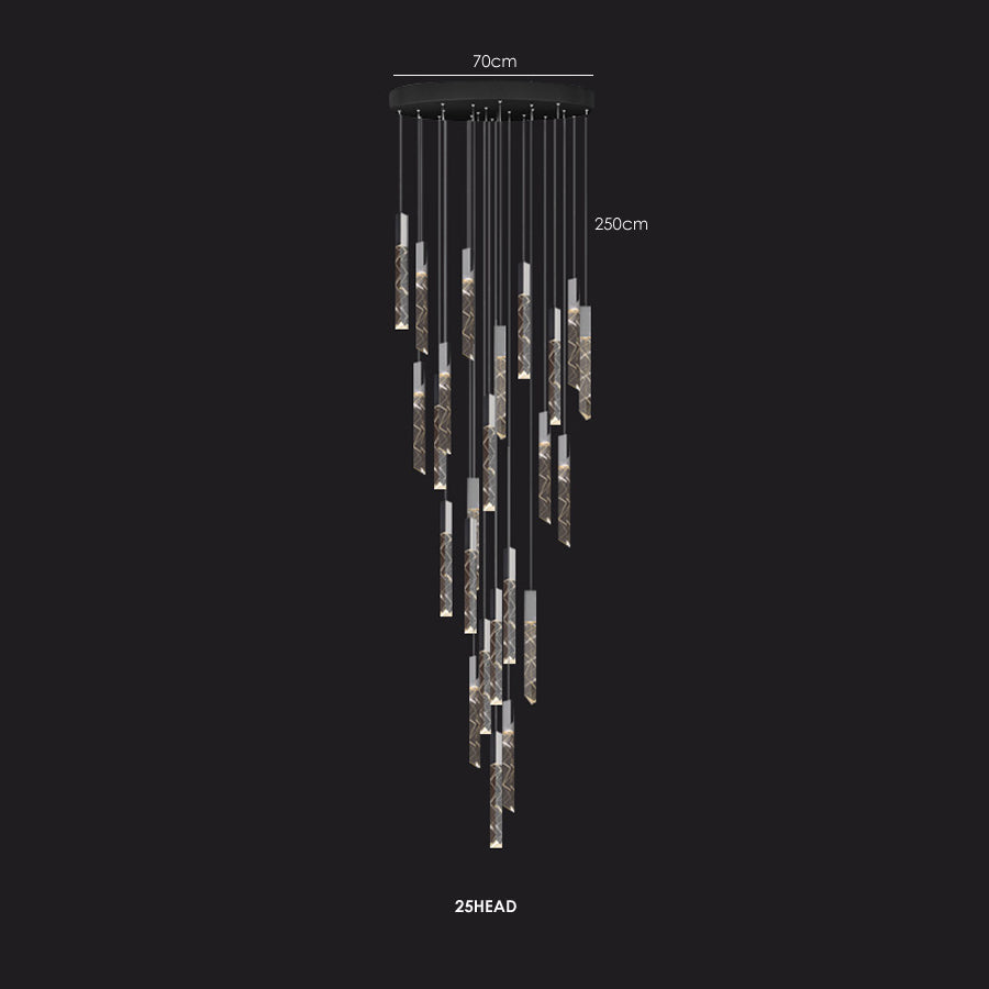 Crafted with meticulous attention to detail, the Ylk Averill features an adaptable LED design, offering both cool and warm light options to suit your mood and setting. Its sleek lines and geometric form embody minimalist symphony, drawing the eye and igniting conversation. Whether illuminating a grand hallway, accentuating your staircase, or serving as a breathtaking focal point in the living room, this chandelier harmonizes effortlessly with contemporary decor while echoing classic Nordic simplicity.