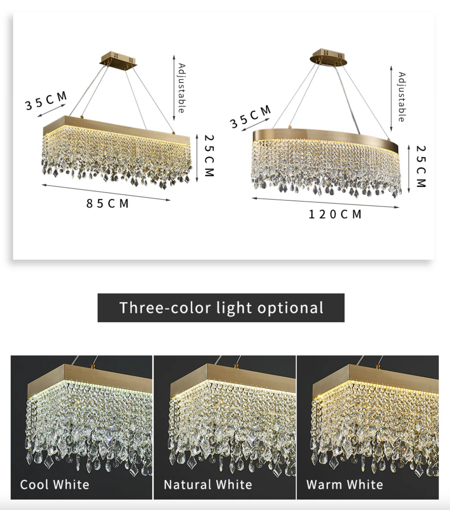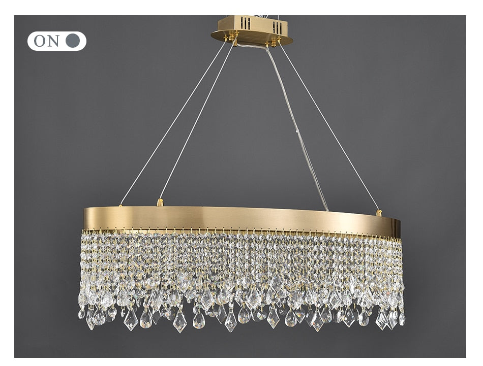 Bathe your living space in the exquisite glow of the Ylk Cielo Gold Crystal Pendant Lamp, a stunning centerpiece that seamlessly merges contemporary design with Nordic elegance. Crafted with meticulous attention to detail, this chandelier features a refined golden rectangle/oval silhouette adorned with cascading crystals that refract light beautifully, transforming your dining room or kitchen into an oasis of luxury. Each droplet emits a sparkling luminescence, creating a warm and inviting atmosphere ideal for both intimate dinners and lively gatherings.
