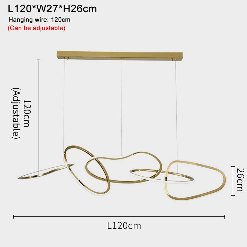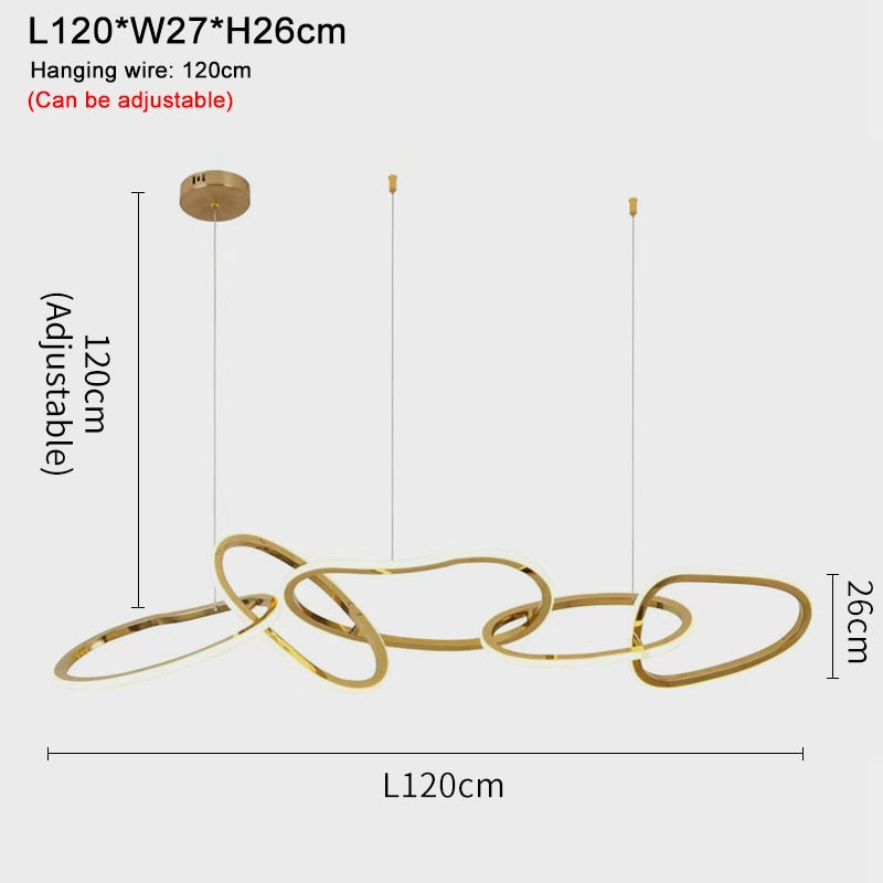 Elevate your living space with the breathtaking Ylk Damarion Design Ring Chandelier, a stunning centerpiece that harmonizes luxury and contemporary Nordic aesthetics. Crafted with a polished stainless steel finish, this chandelier's luxurious gold accents create a warm, inviting glow that transforms any room into an oasis of elegance. Its unique design, featuring gracefully intertwined rings, embodies fluidity and modern sophistication, making it a striking focal point for dining areas, living rooms, or entryways.