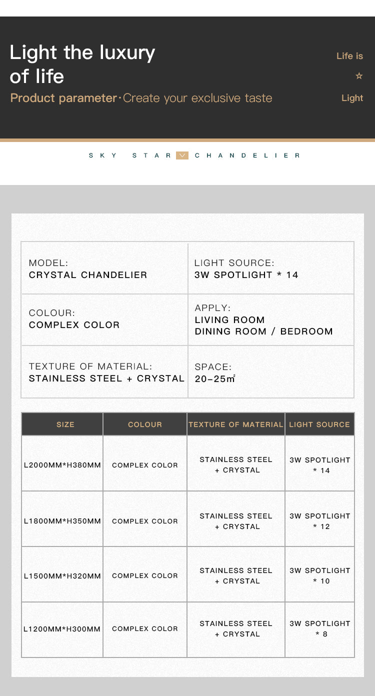 Every detail of the Ylk chandelier is designed to captivate the senses. Feel the refined textures of the high-quality stainless steel and crystal as they harmonize to create a luxurious feel in your home. The chandelier’s LED bulbs offer a choice between warm and cool light temperatures, allowing you to set the perfect mood for any occasion. Whether hosting an intimate dinner party or enjoying a quiet evening at home, this fixture adapts effortlessly to your lifestyle, enriching every moment with its ethereal glow.
