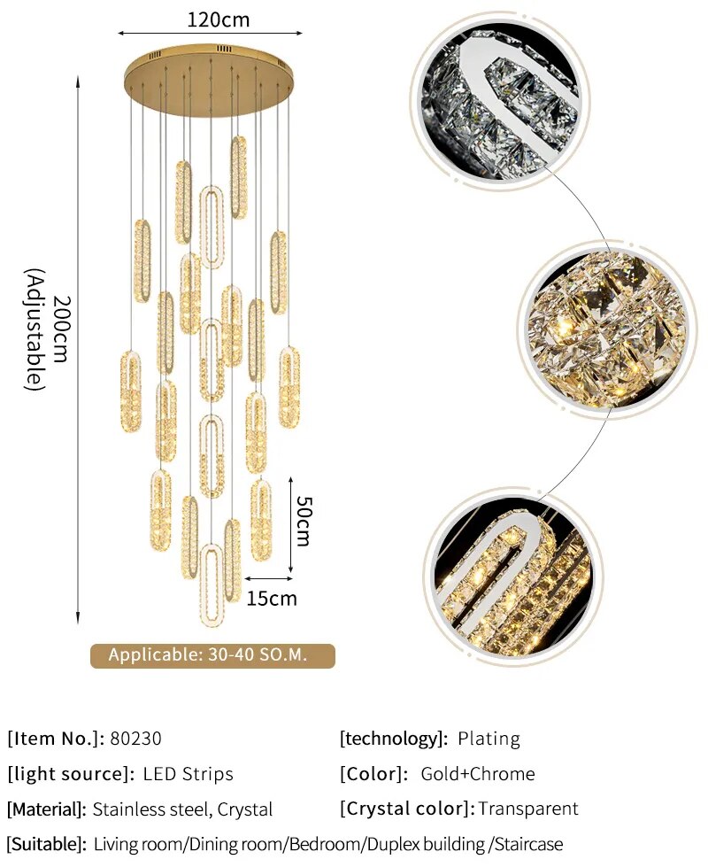 YLK Oval Long LED Crystal chandelier for staircase luxury lobby hallway hanging light