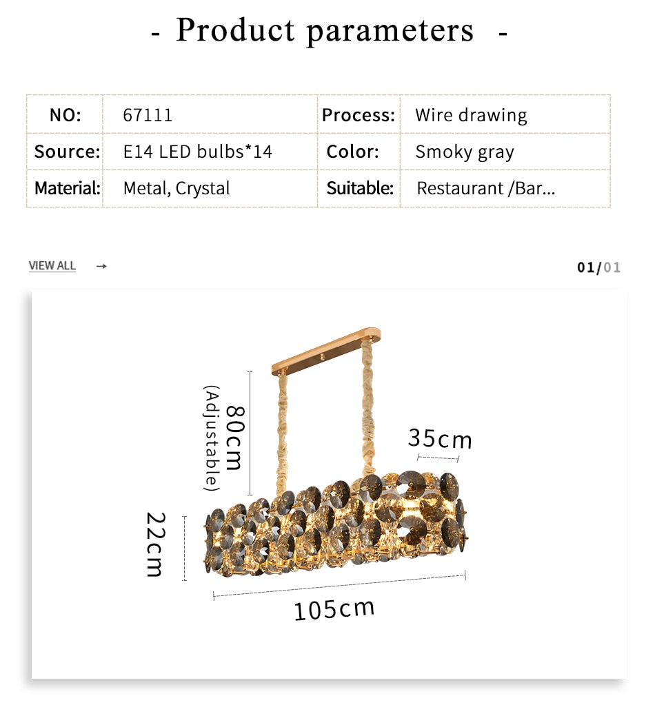 YLK Luxury Dining Room Crystal Chandelier Gold Oval Design Kitchen Island Hanging Light