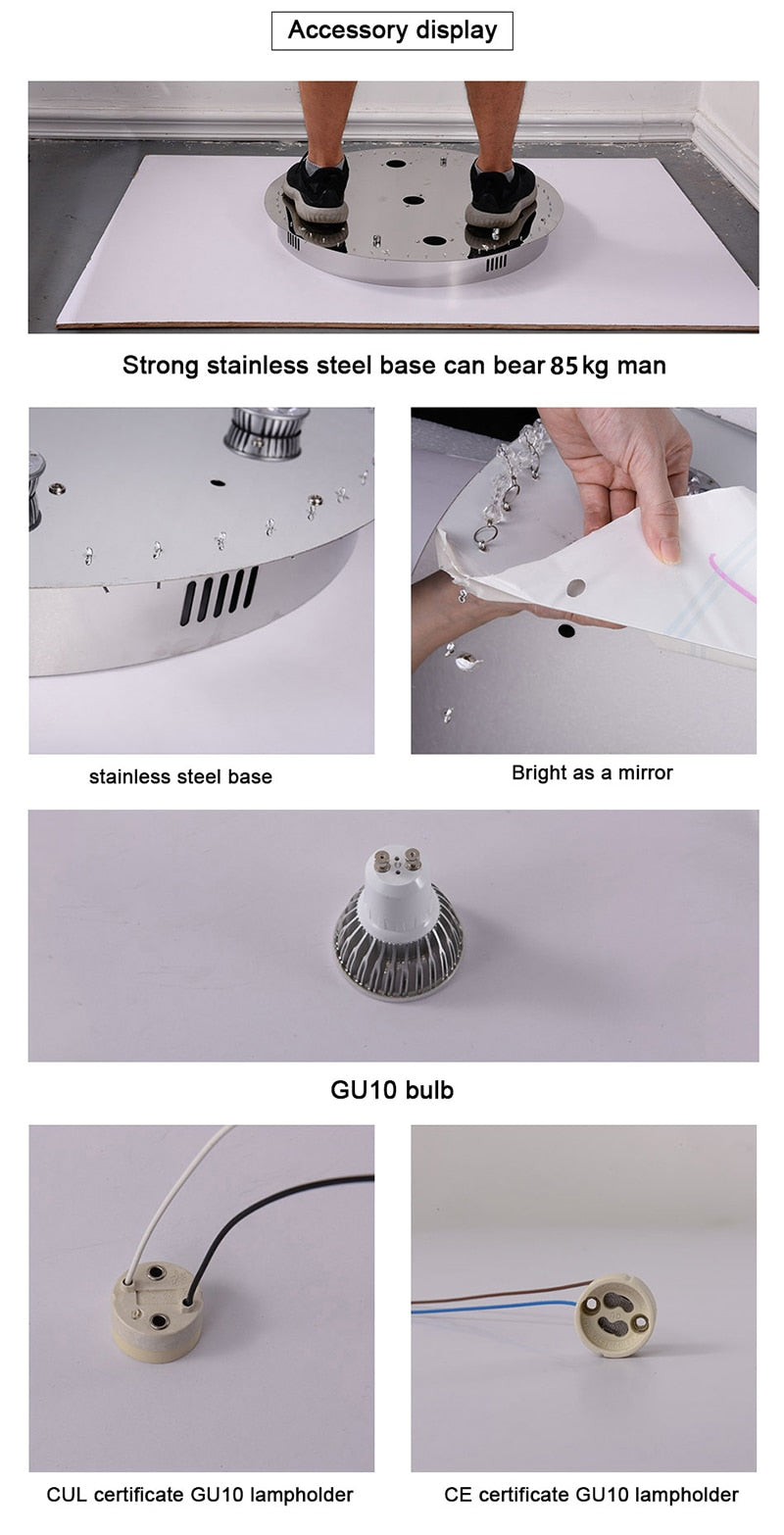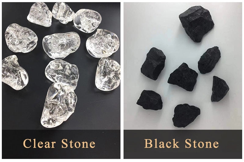 Materials: Chrome mirror stainless steel chassis, natural crystal stones