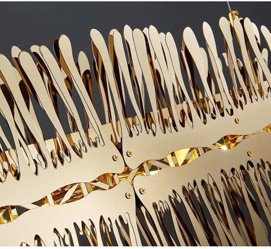 Transform your living space into a refined sanctuary with the Ylk Modern LED Chandelier Fixture. This exquisite piece embodies Nordic minimalism with its fluid, sculptural design that draws inspiration from organic forms found in nature. Crafted from premium stainless steel and finished in a stunning polished gold or silver, this chandelier radiates a sense of luxury while seamlessly blending into a variety of decors. Its shadeless design illuminates your home with a soft, welcoming glow, making it a perfect centerpiece for dining rooms, living areas, or modern office spaces.