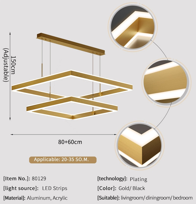 Elevate your living space with the Ylk Square Black/Gold Hanging Lamp, a stunning embodiment of Nordic-inspired design that harmonizes simplicity and sophistication. This exquisite chandelier features a striking square frame finished in a luxurious gold hue, meticulously designed to interact beautifully with the rich black accents. With its sleek lines and modern aura, each shadow cast becomes a part of your decor dialogue, adding depth and character to any room.