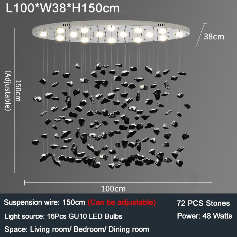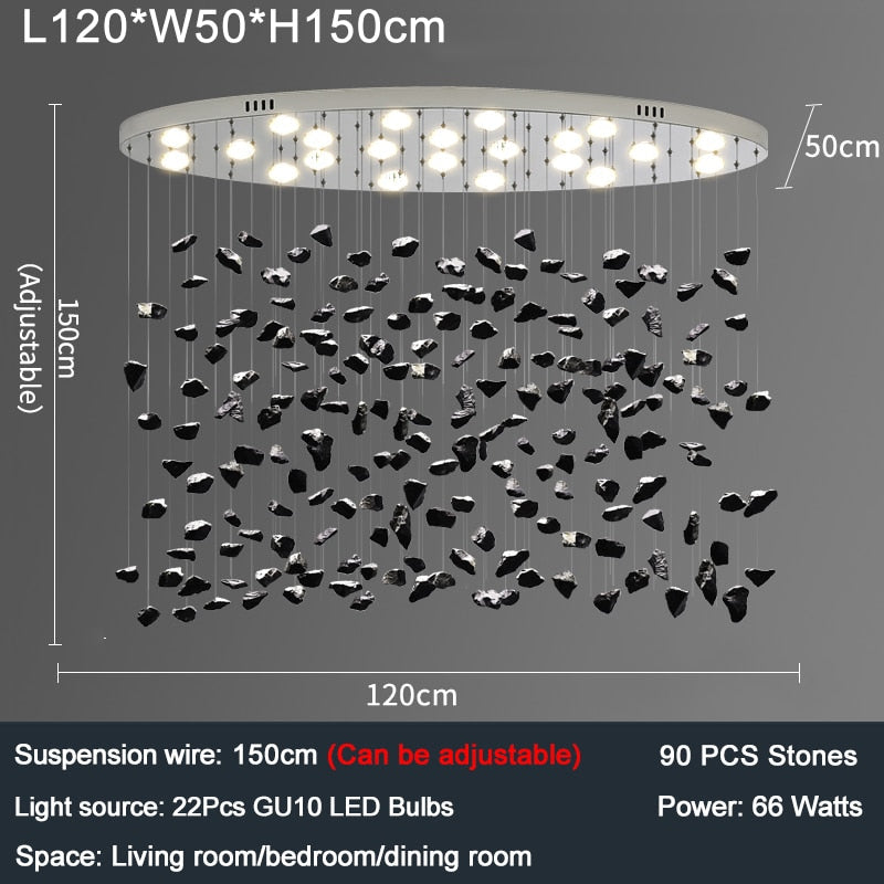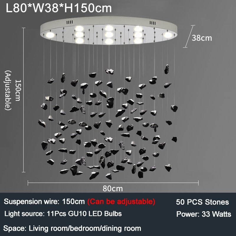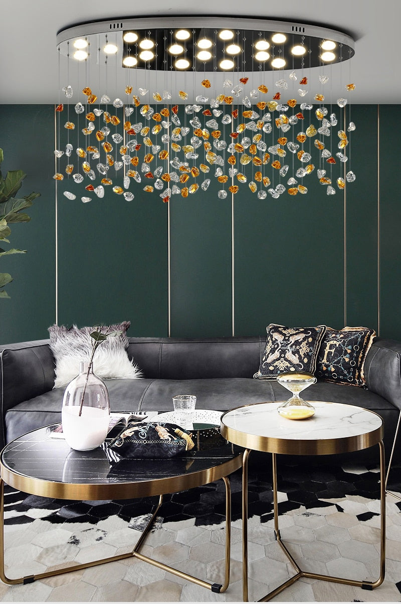 Crafted with meticulous attention to detail, the chandelier's polished stainless steel structure complements the delicate crystal adornments, resulting in a luxurious yet minimalist design. The unique cascading arrangement of colorful stones not only enhances its visual impact but also offers an enchanting play of light and shadow, promising to be a conversation starter for guests. With customizable sizing options, you can find the perfect fit for any space, whether it be a modern dining room, cozy living area, or an elegant entryway.