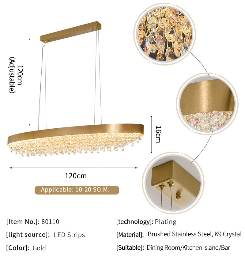 Embrace the elegance of the Ylk Yasmine Luxury Crystal Chandelier, a stunning fusion of modern design and Nordic minimalism that transforms your space into a sanctuary of style. Crafted from exquisite K9 crystal and sleek stainless steel, this chandelier features a streamlined silhouette, adorned with cascading crystal droplets that catch the light and create a mesmerizing play of shimmer and radiance. The refined brushed gold or matte black finishes offer a touch of sophistication, seamlessly integrating into your decor while becoming a captivating focal point.