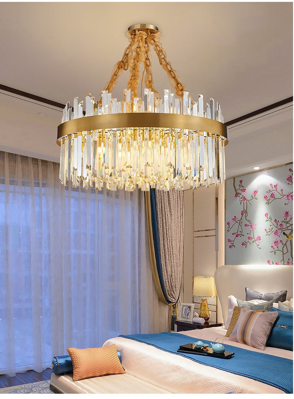 Transform your living space with the Ylk Yvaine Modern Crystal Chandelier, a stunning centerpiece that captures the essence of Nordic design, marrying minimalism with elegance. Harnessing the natural beauty of light, this chandelier radiates a warm glow, emanating from its exquisite array of high-quality crystal prisms that reflect and refract light, creating a mesmerizing display of brilliance. The brushed gold finish offers a sophisticated touch, effortlessly enhancing both modern and traditional interiors while adding a layer of warmth and luxury.